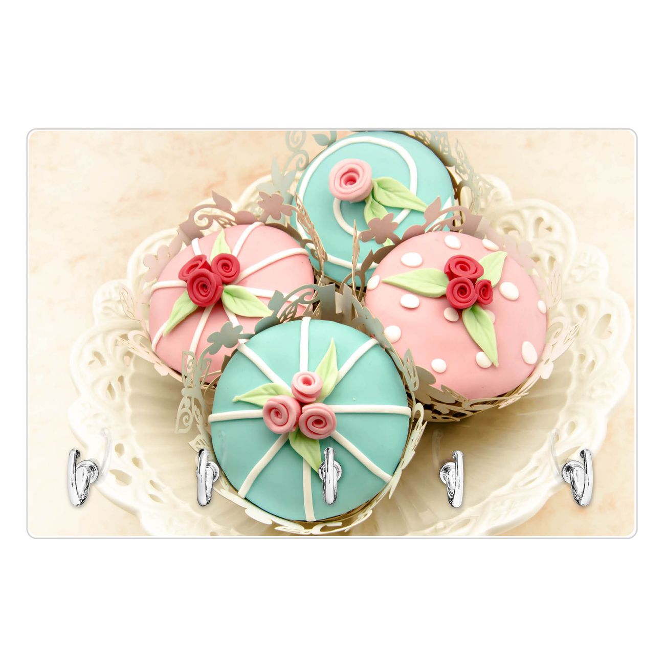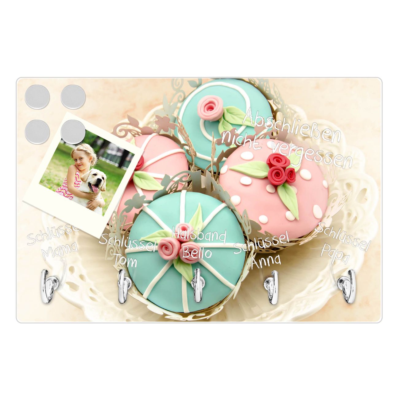 Glas Schlüsselbrett mit 5 Haken Cupcakes