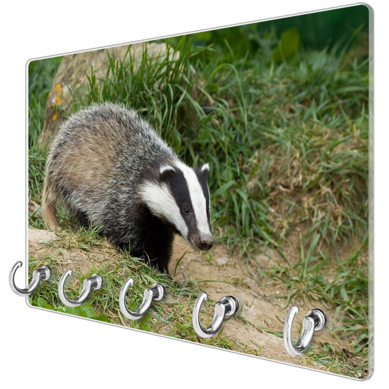 Glas Schlüsselbrett mit 5 Haken Dachs