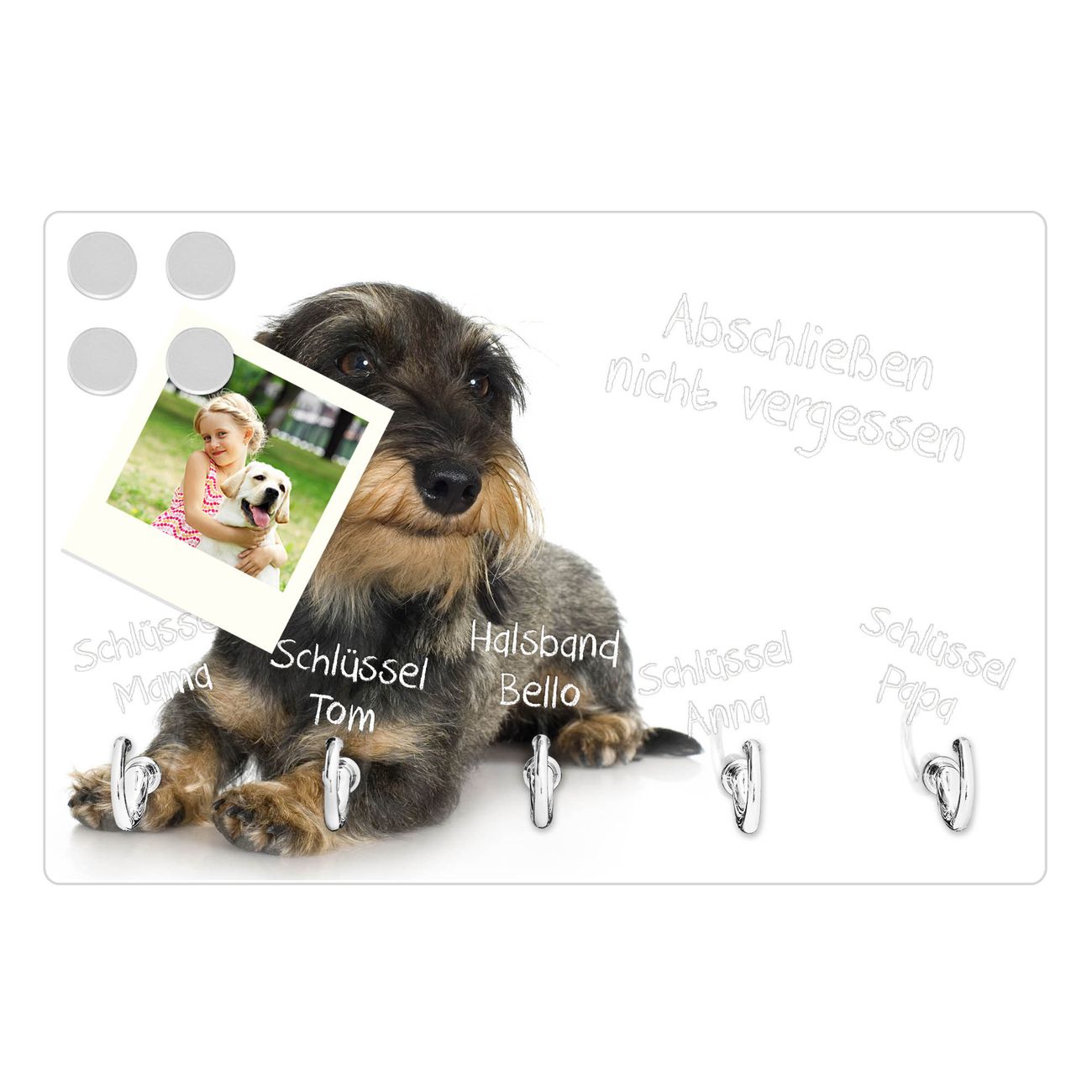 Glas Schlüsselbrett mit 5 Haken Dackel