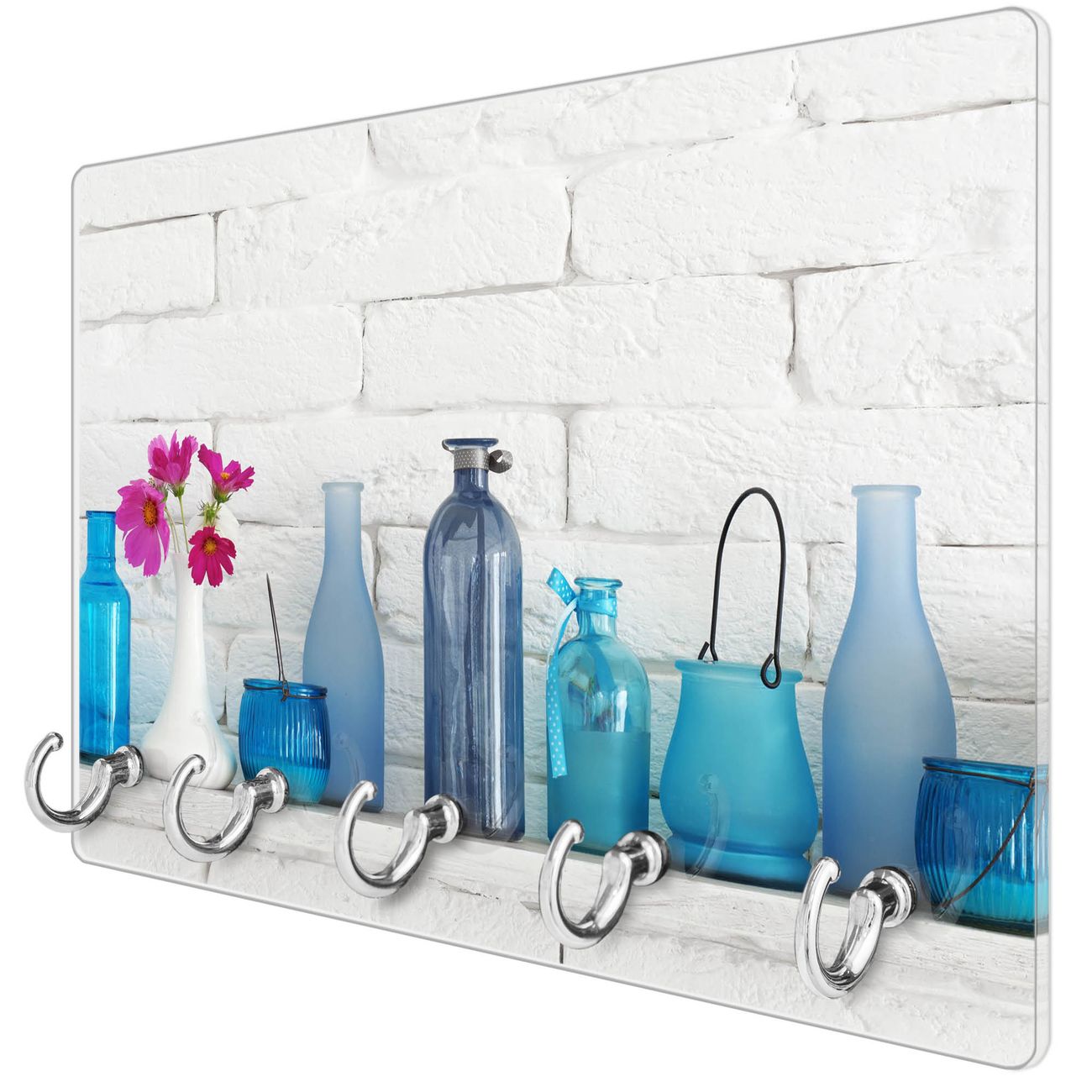 Glas Schlüsselbrett mit 5 Haken Dekoartikel Blau