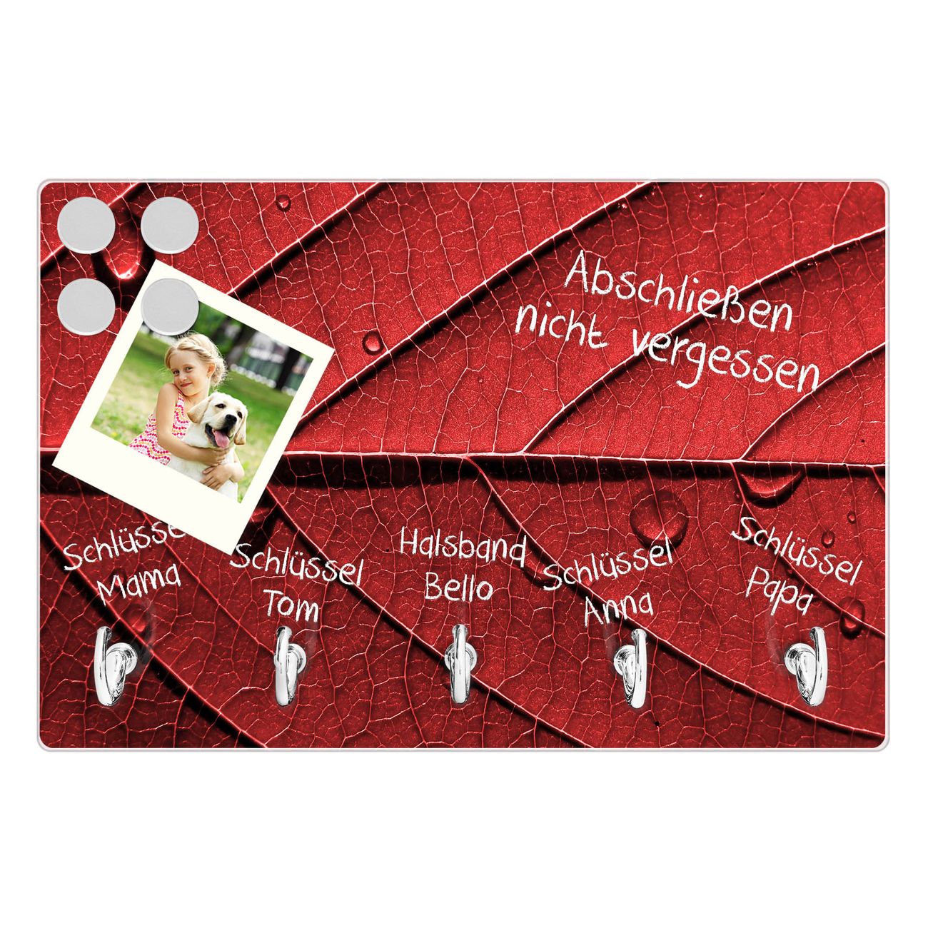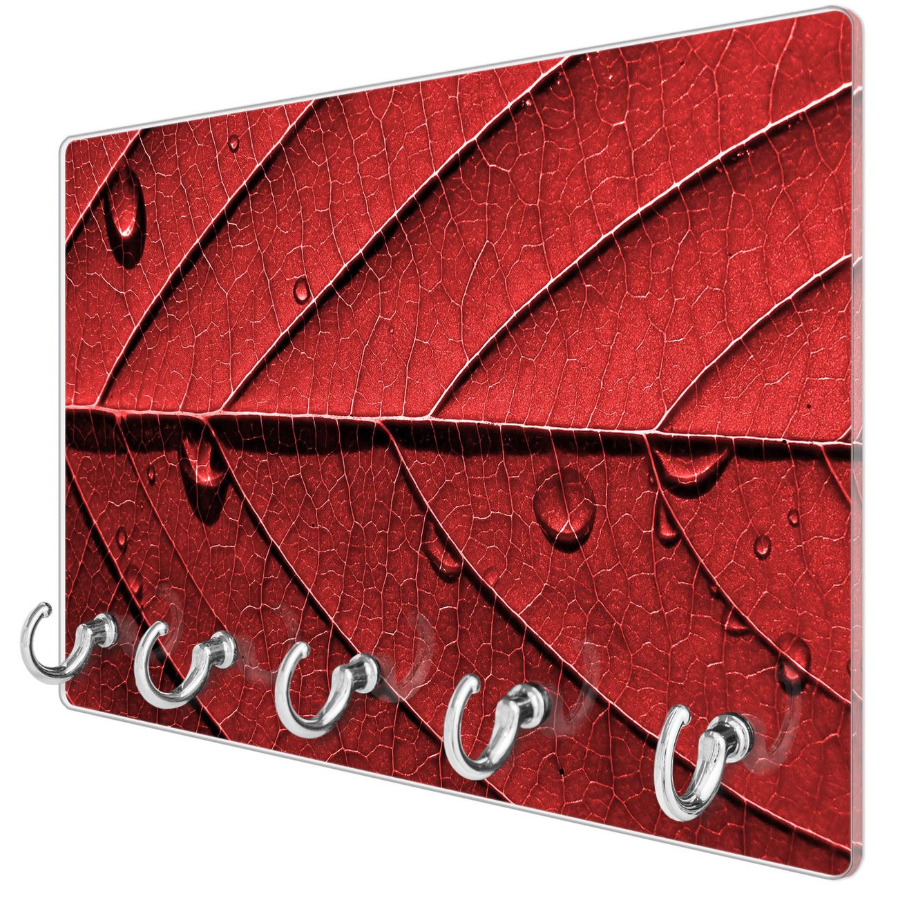 Glas Schlüsselbrett mit 5 Haken Detail Blatt