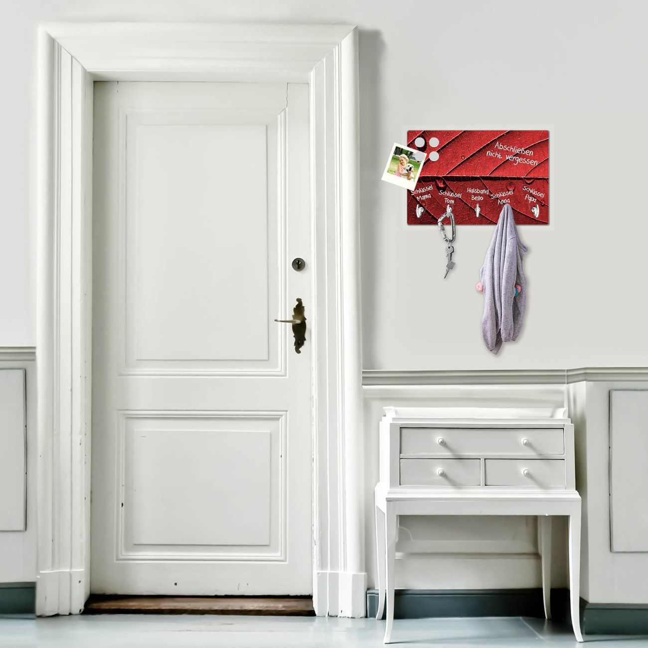 FUNKTION: Mit dem banjado Schlüsselbrett Detail Blatt hat Ihre Suche nach dem Schlüsselbund endlich ein Ende! Auf gesamt 5 Haken finden auch die größten Schlüssel ihren Platz. Durch den farbenfrohen Motivdruck ist das Schlüsselboard ein Blickfang in jeder Wohnung. DESIGN: Die Schlüsselleiste mit Motiv Detail Blatt hat ein sehr ansprechendes und ausgefallenes Design. Das Glasboard besteht aus einer gehärteten Glasscheibe mit dem Motiv Ihrer Wahl. Ihre neue Schlüsselaufbewahrung ist funktionell und ein optisches Highlight. DETAILS: Das Schlüsselbrett ist 30 x 20 x 4,5 CM (BxHxT). Das ganze Board besteht aus gehärtetem Sicherheitsglas, die Haken zur Selbstmontage präsentieren sich in Edelstahl-Optik. Für einen sicheren Halt erfolgt die Aufhängung an 2 vorgefertigten Haltern an der Rückseite. Das Montagematerial fügen wir bei. NUTZEN: Hier findet alles seinen Platz: Schlüsselbunde, Geschirrtücher, Hundeleinen oder Kinderjacken. Das Glas kann mit Kreidestiften bzw. Whiteboard-Marker beschrieben werden, mit extrastarken Neodym-Magneten können Sie auch Notizen anheften. BANJADO: Wir sind ein kleines Team aus dem Herzen von Sachsen und fertigen Ihre neue Schlüsselaufbewahrung von Hand an. Sie erhalten Handarbeit und keine preiswerte Importware. Wir hoffen, dass Ihnen unsere Idee zusagt, herzlichst das banjado Team.