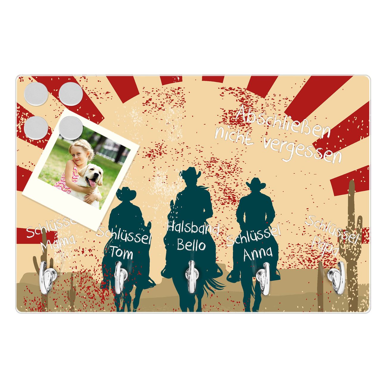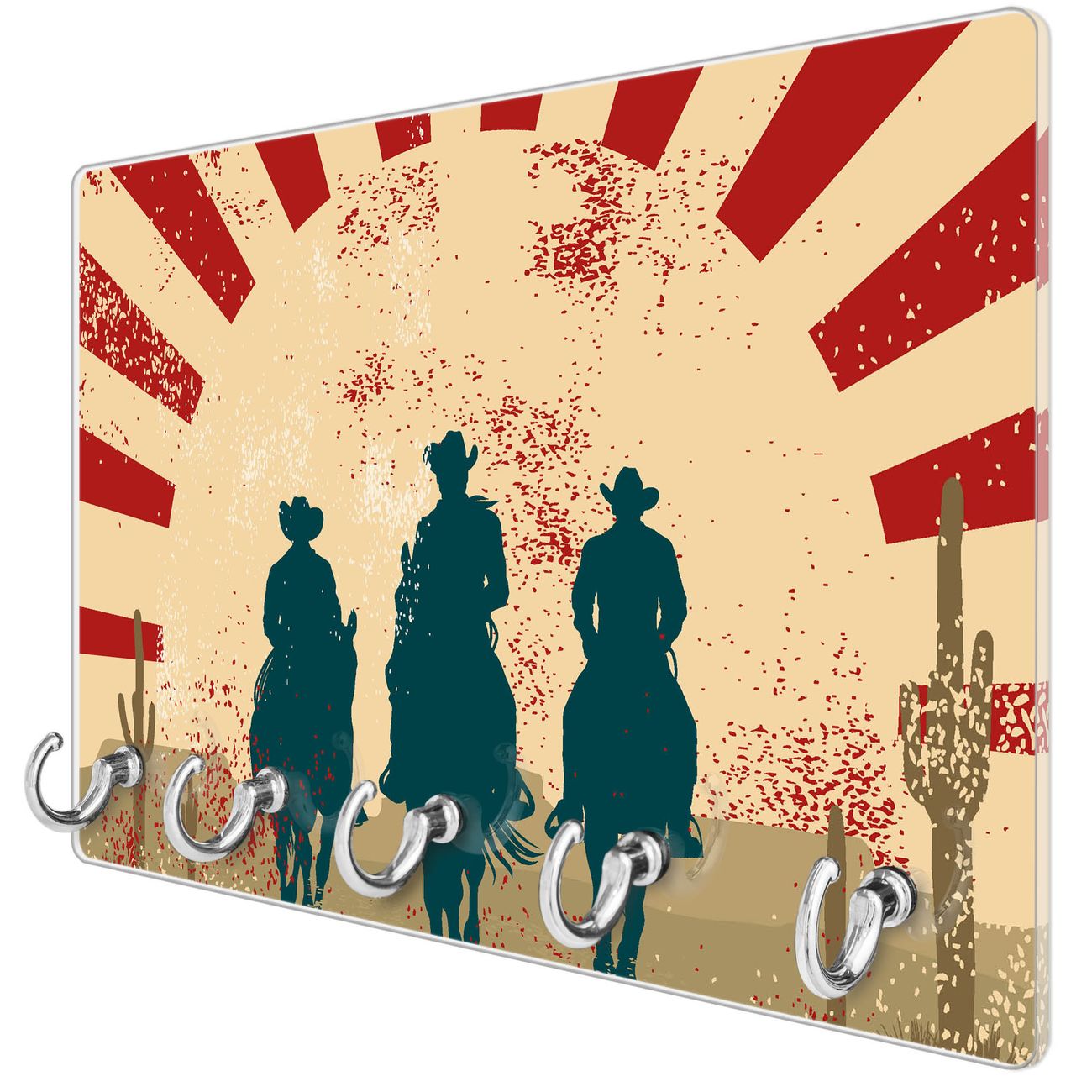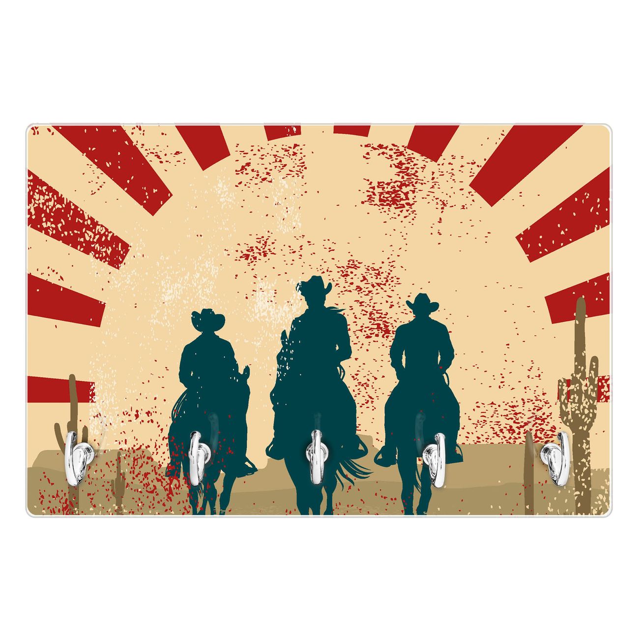 Glas Schlüsselbrett mit 5 Haken Drei Cowboys