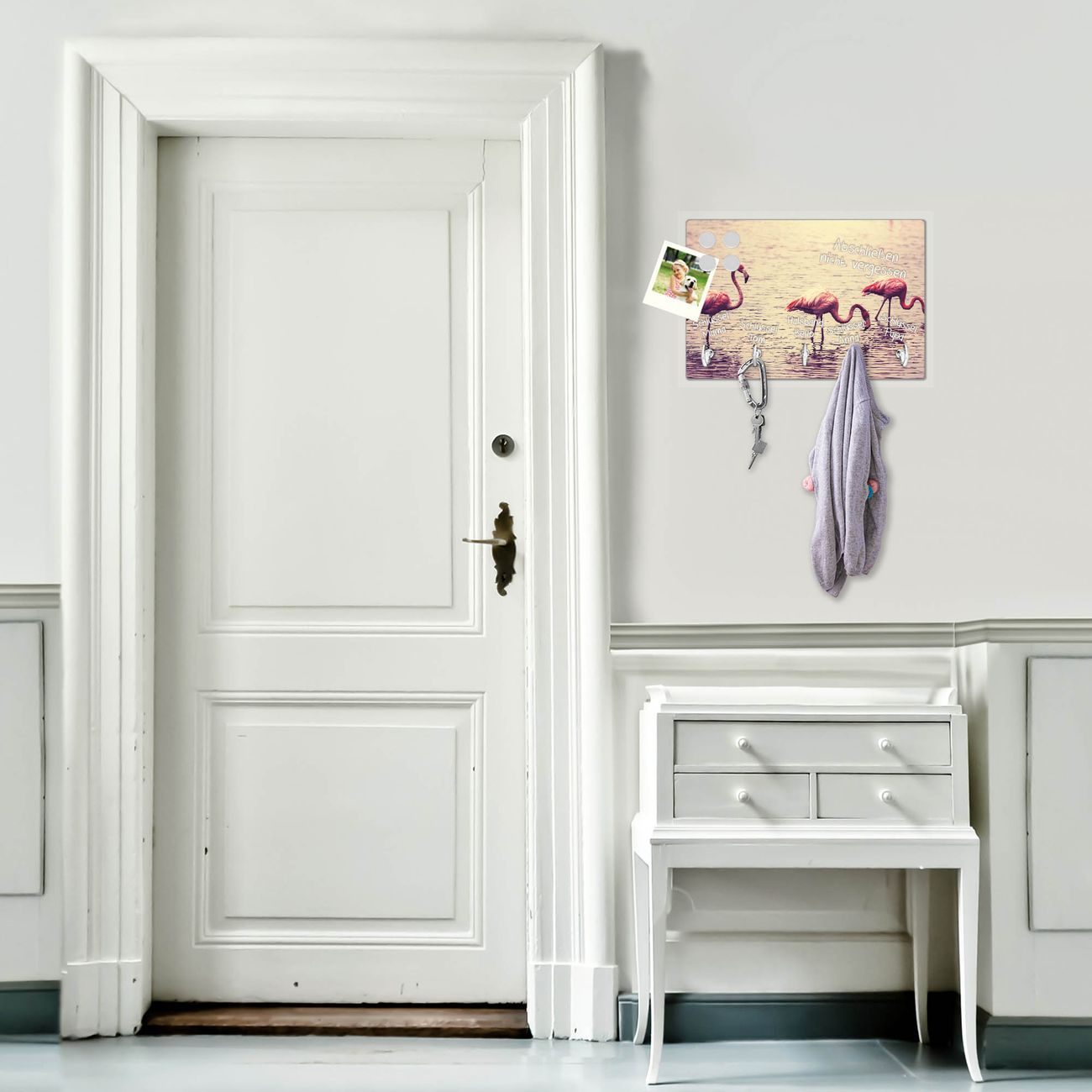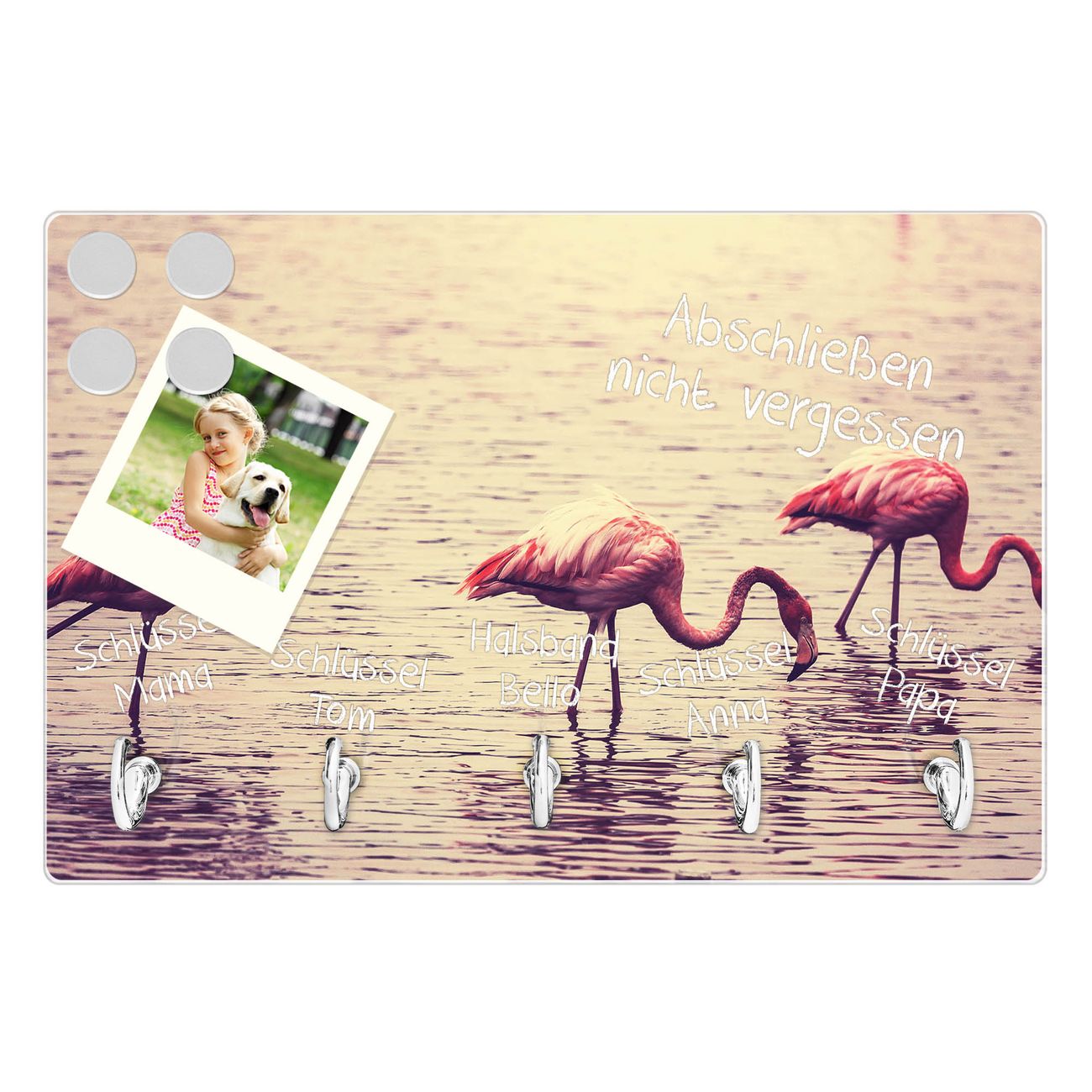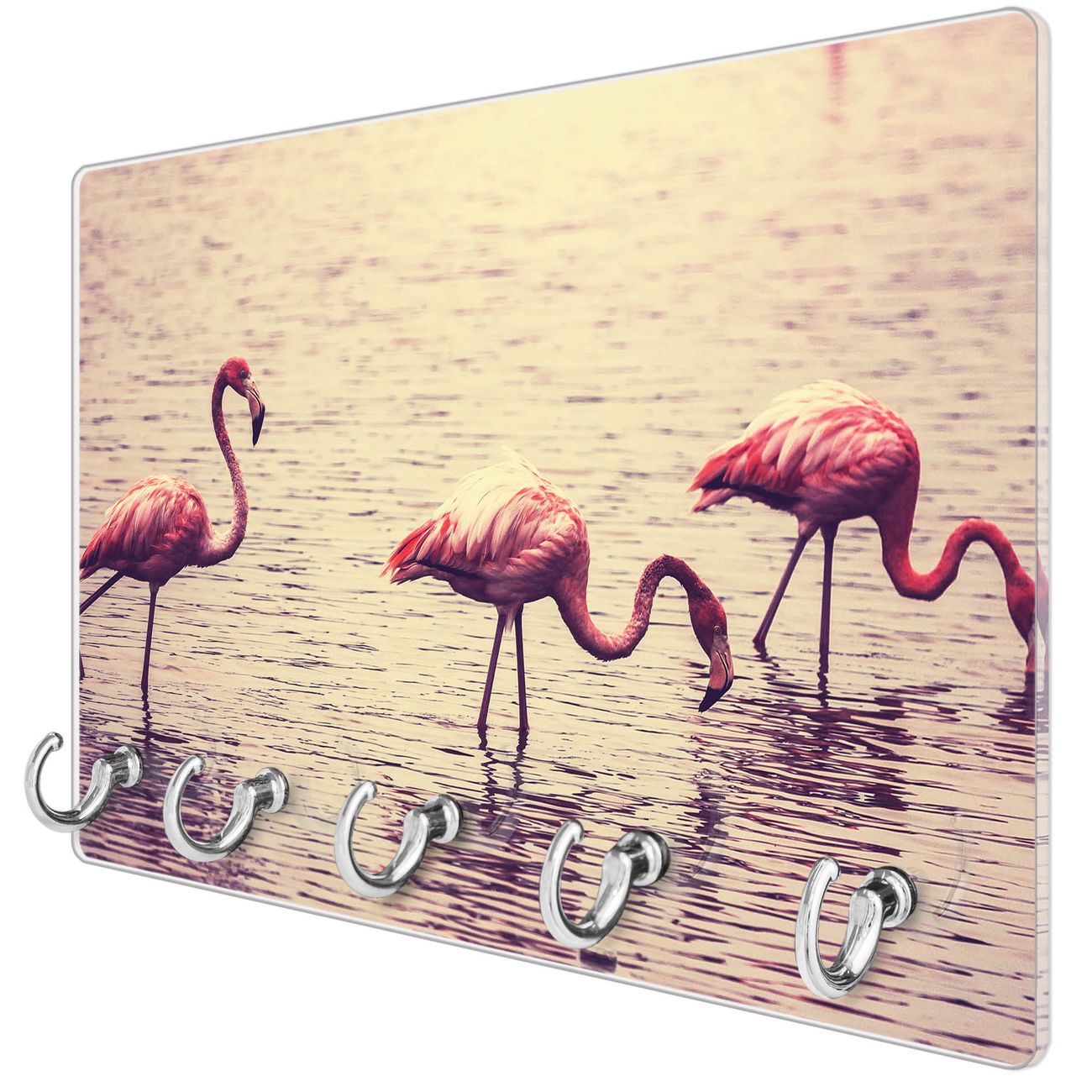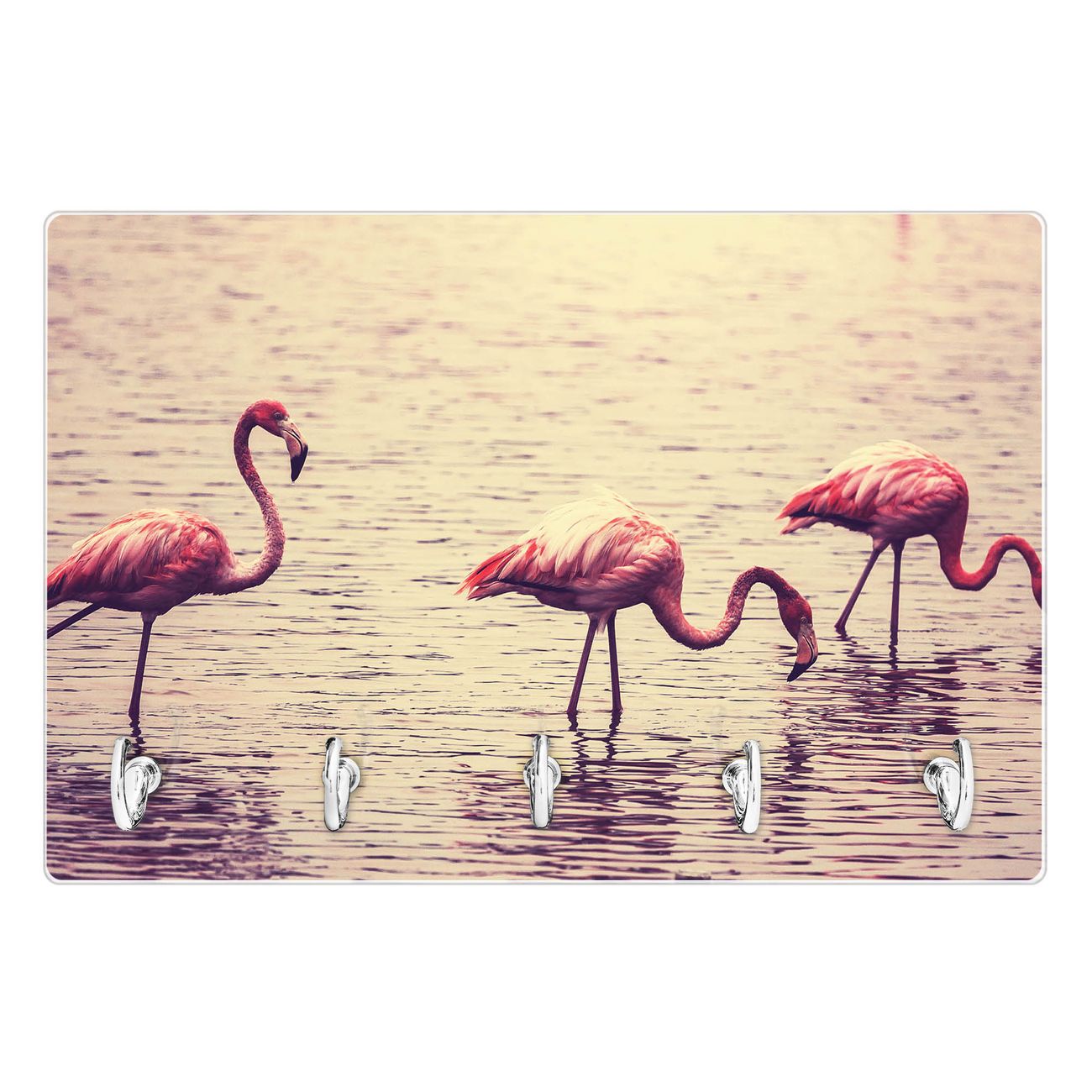 Glas Schlüsselbrett mit 5 Haken Drei Flamnigos