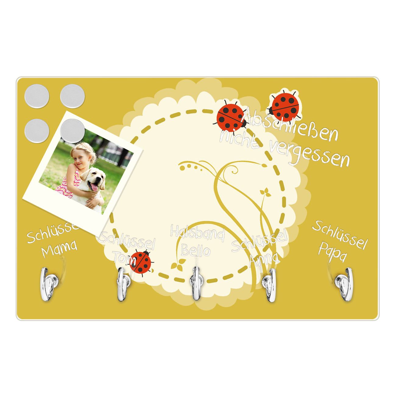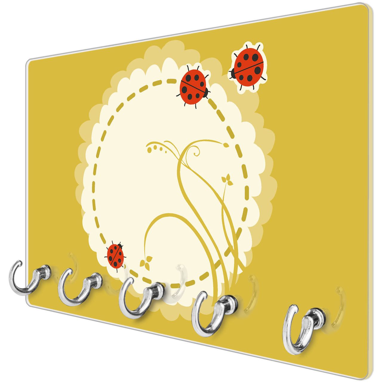 Glas Schlüsselbrett mit 5 Haken Drei Marienkäfer