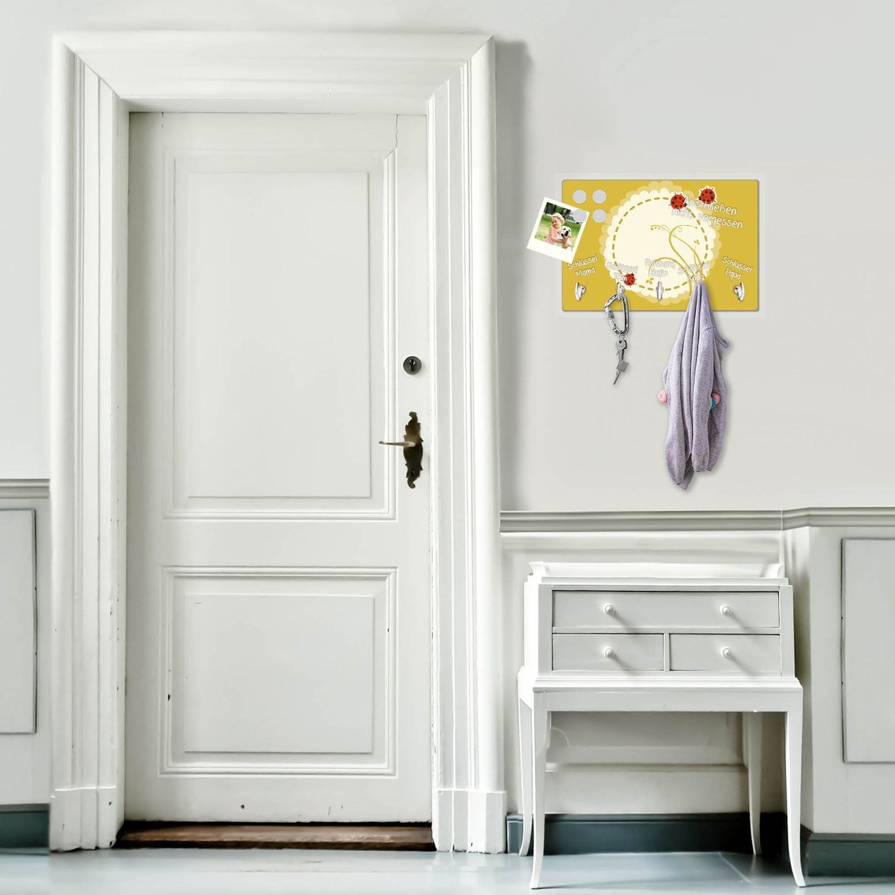 FUNKTION: Mit dem banjado Schlüsselbrett Drei Marienkäfer hat Ihre Suche nach dem Schlüsselbund endlich ein Ende! Auf gesamt 5 Haken finden auch die größten Schlüssel ihren Platz. Durch den farbenfrohen Motivdruck ist das Schlüsselboard ein Blickfang in jeder Wohnung. DESIGN: Die Schlüsselleiste mit Motiv Drei Marienkäfer hat ein sehr ansprechendes und ausgefallenes Design. Das Glasboard besteht aus einer gehärteten Glasscheibe mit dem Motiv Ihrer Wahl. Ihre neue Schlüsselaufbewahrung ist funktionell und ein optisches Highlight. DETAILS: Das Schlüsselbrett ist 30 x 20 x 4,5 CM (BxHxT). Das ganze Board besteht aus gehärtetem Sicherheitsglas, die Haken zur Selbstmontage präsentieren sich in Edelstahl-Optik. Für einen sicheren Halt erfolgt die Aufhängung an 2 vorgefertigten Haltern an der Rückseite. Das Montagematerial fügen wir bei. NUTZEN: Hier findet alles seinen Platz: Schlüsselbunde, Geschirrtücher, Hundeleinen oder Kinderjacken. Das Glas kann mit Kreidestiften bzw. Whiteboard-Marker beschrieben werden, mit extrastarken Neodym-Magneten können Sie auch Notizen anheften. BANJADO: Wir sind ein kleines Team aus dem Herzen von Sachsen und fertigen Ihre neue Schlüsselaufbewahrung von Hand an. Sie erhalten Handarbeit und keine preiswerte Importware. Wir hoffen, dass Ihnen unsere Idee zusagt, herzlichst das banjado Team.