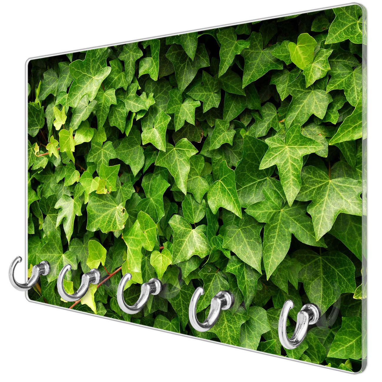 Glas Schlüsselbrett mit 5 Haken Efeu