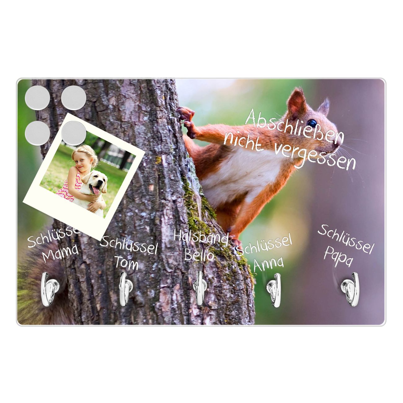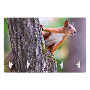 Glas Schlüsselbrett mit 5 Haken Eichhörnchen