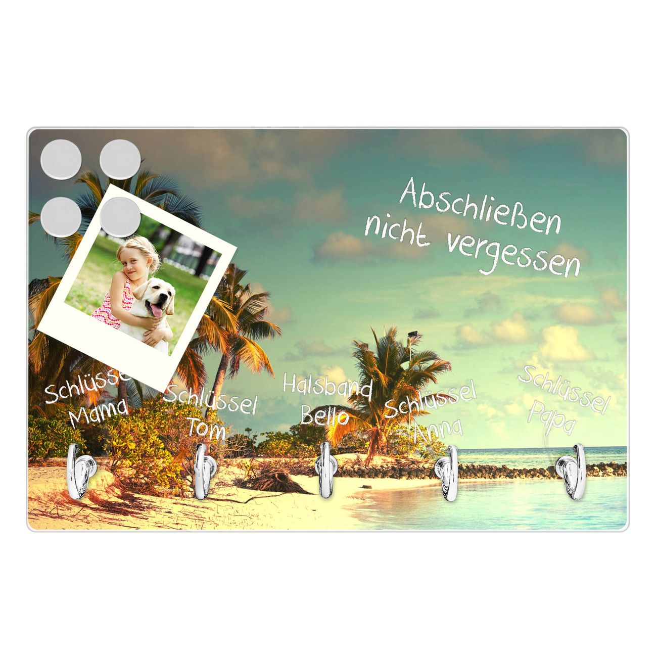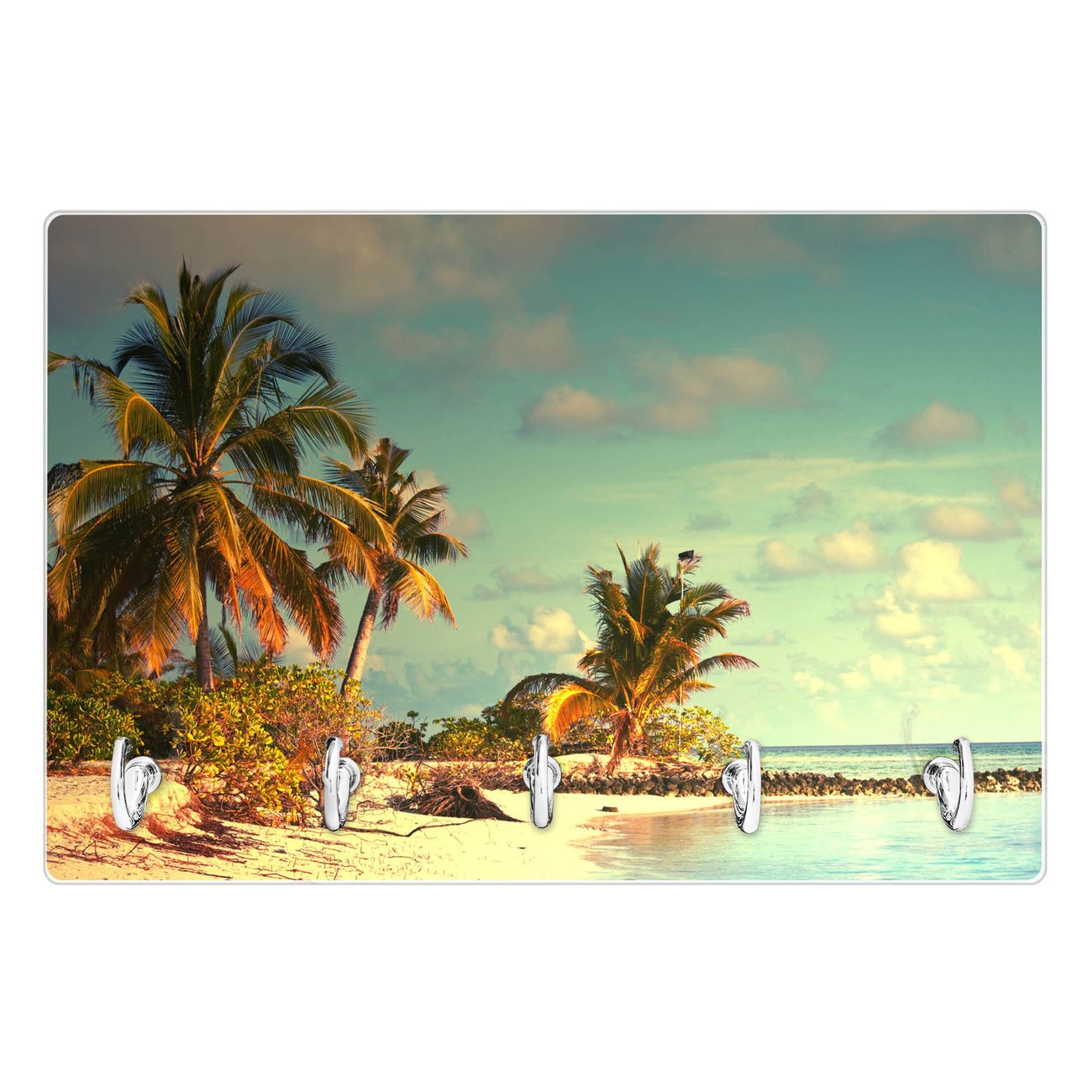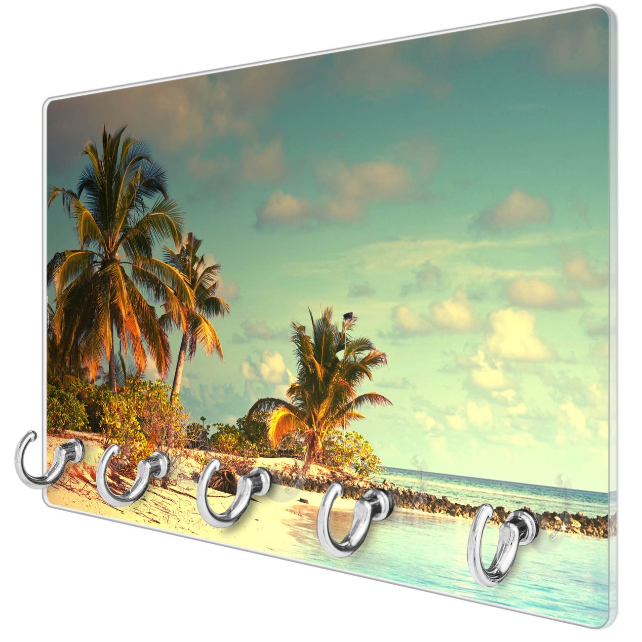 Glas Schlüsselbrett mit 5 Haken Einsame Insel