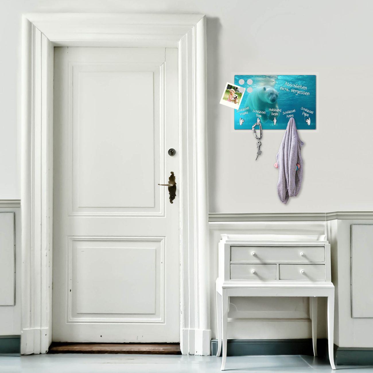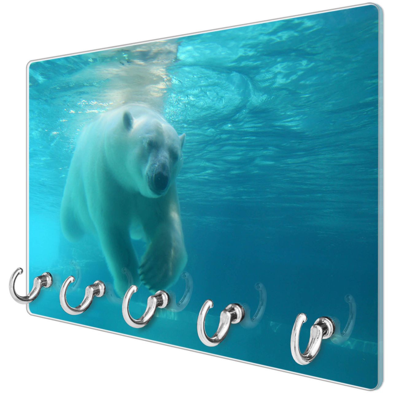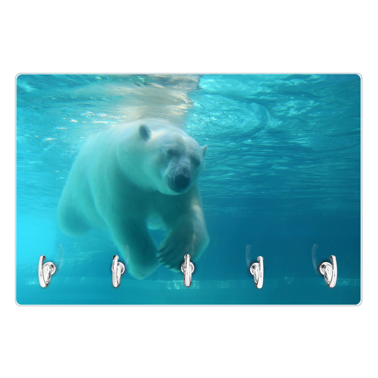 Glas Schlüsselbrett mit 5 Haken Eisbär unter Wasser