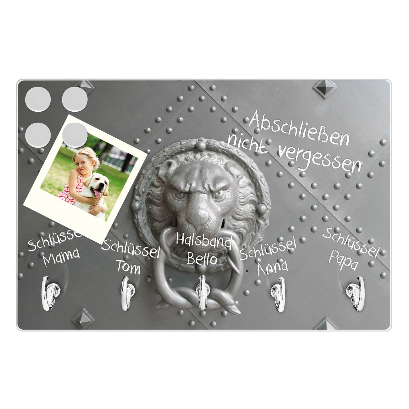 Glas Schlüsselbrett mit 5 Haken Eisentor