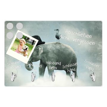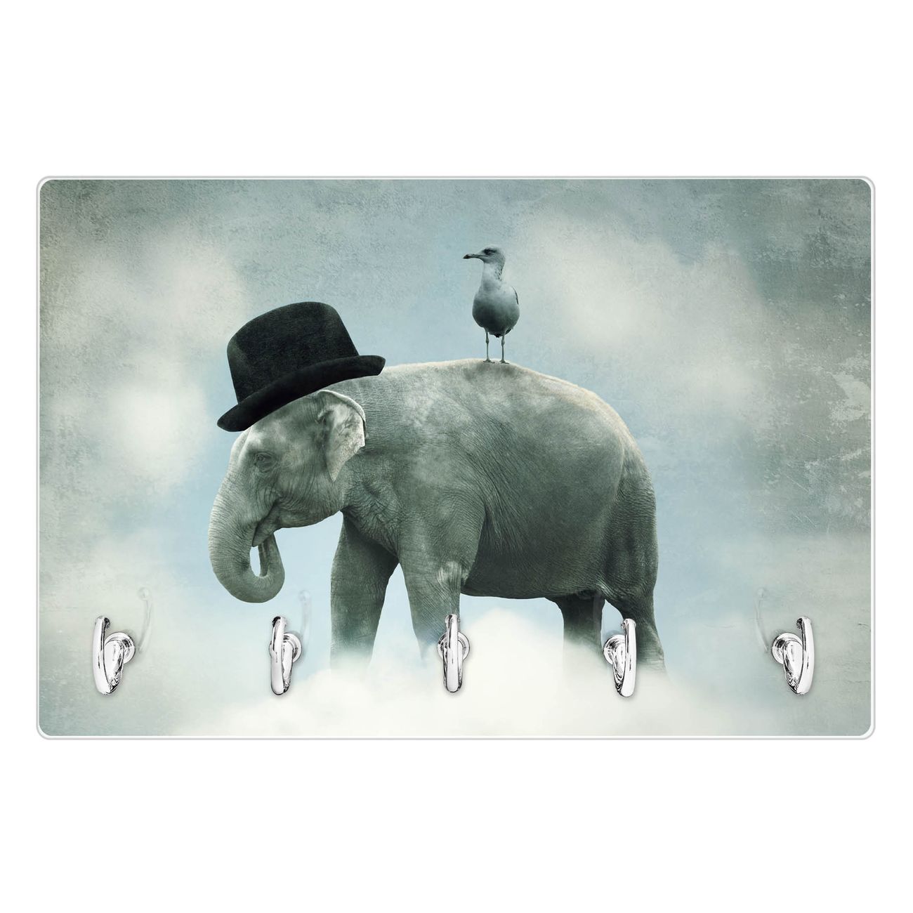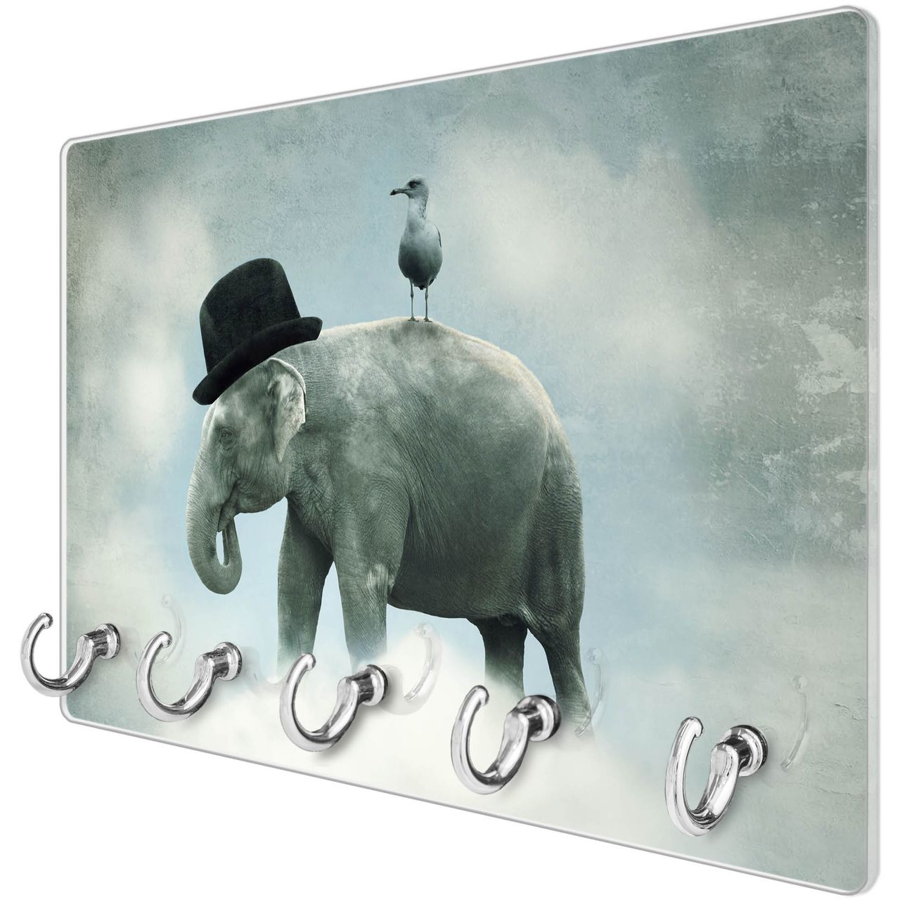 Glas Schlüsselbrett mit 5 Haken Elefant und Möwe