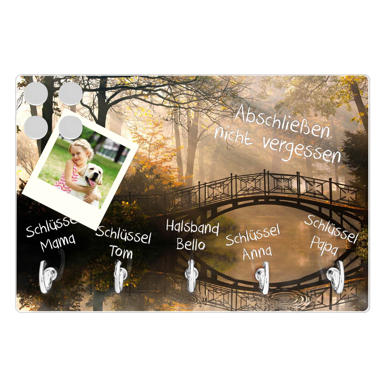 Glas Schlüsselbrett mit 5 Haken Englischer Garten