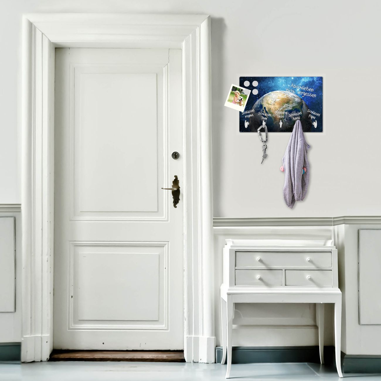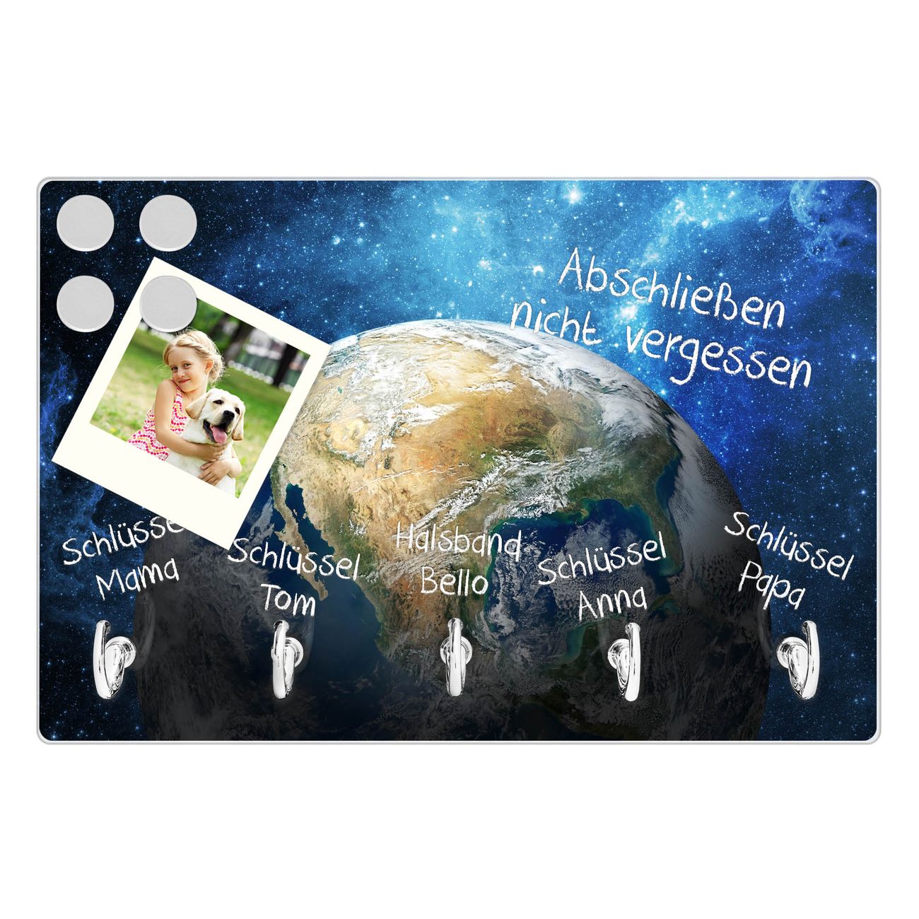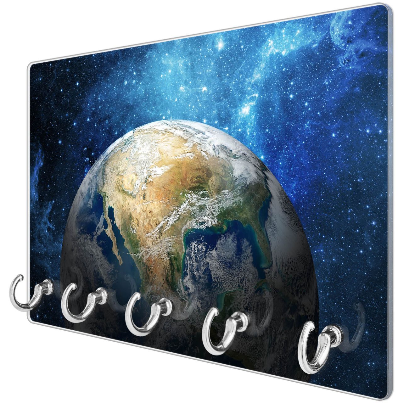 Glas Schlüsselbrett mit 5 Haken Erdkugel