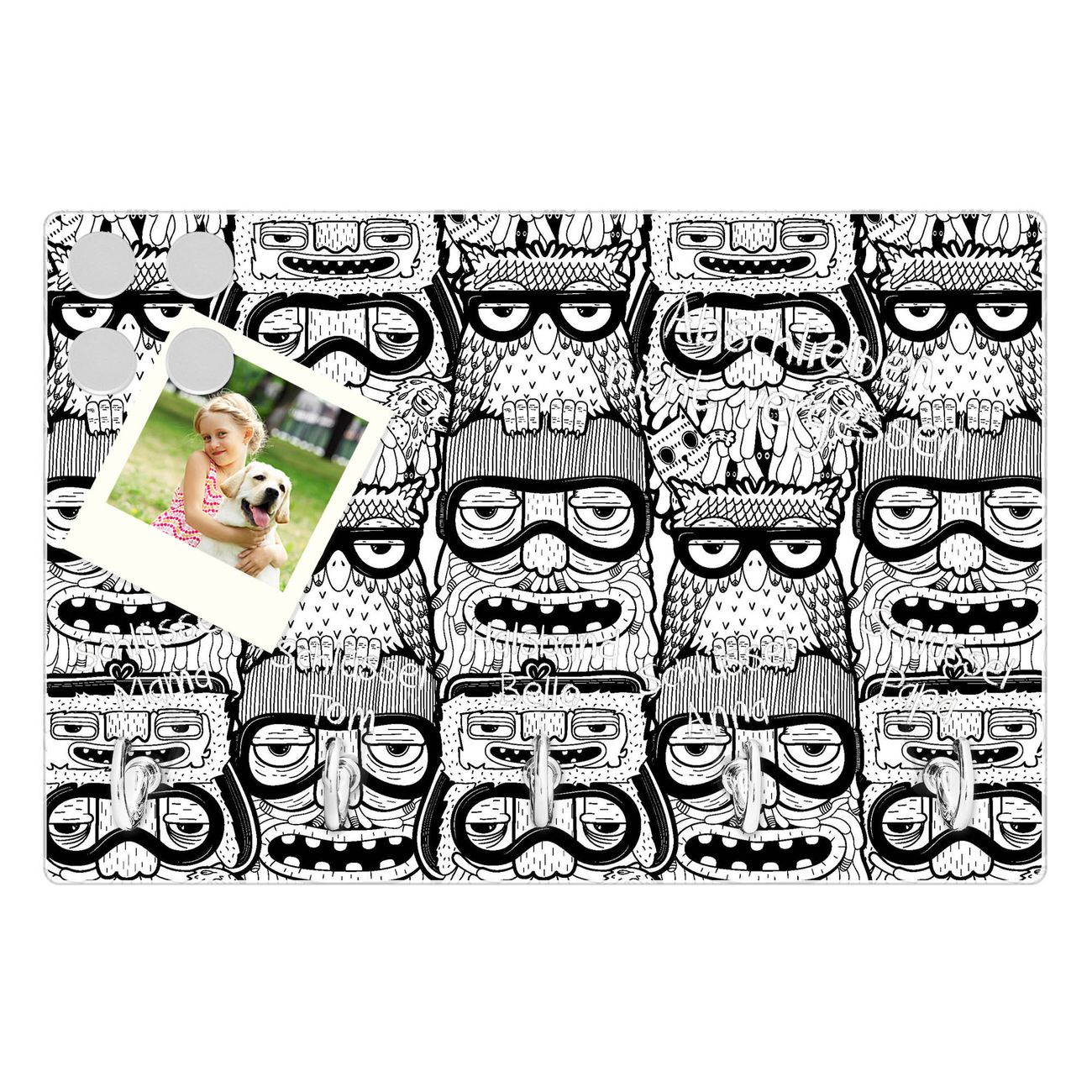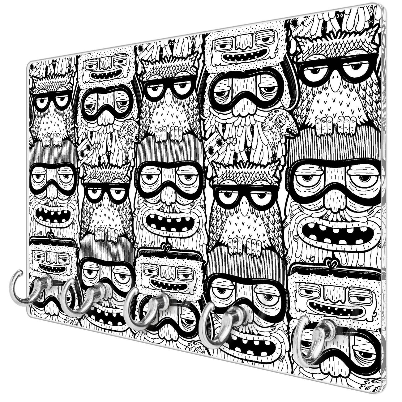 Glas Schlüsselbrett mit 5 Haken Eule und Olaf