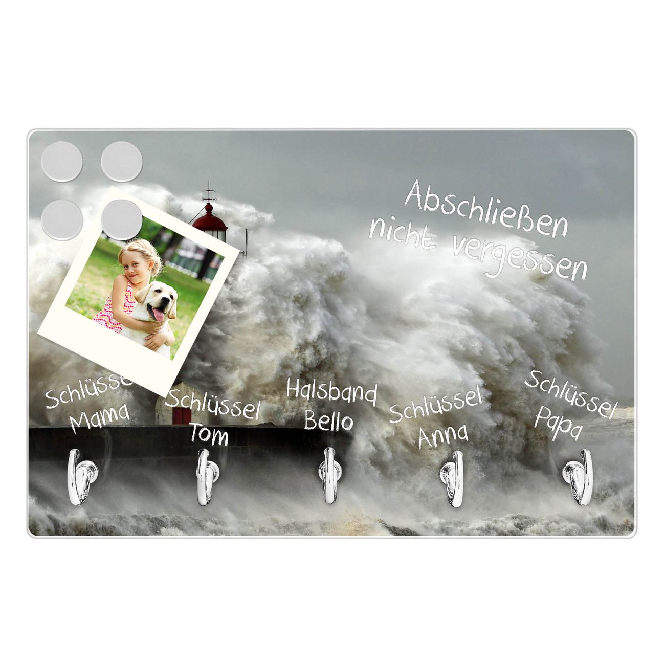 Glas Schlüsselbrett mit 5 Haken Fels In Der Brandung