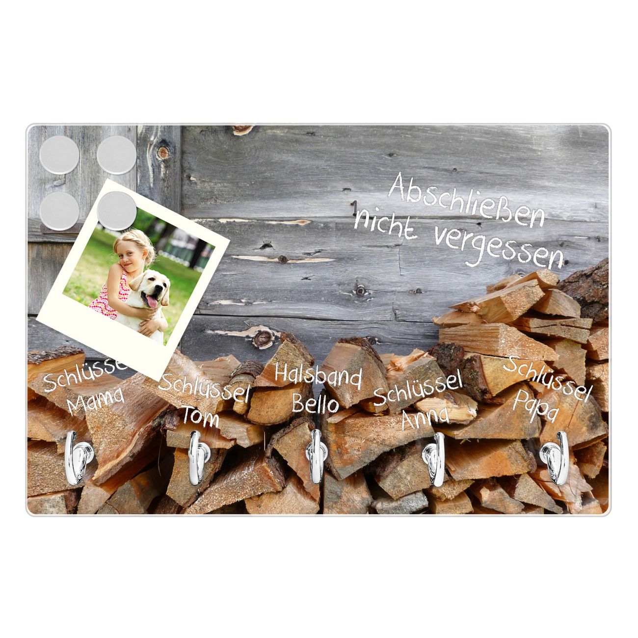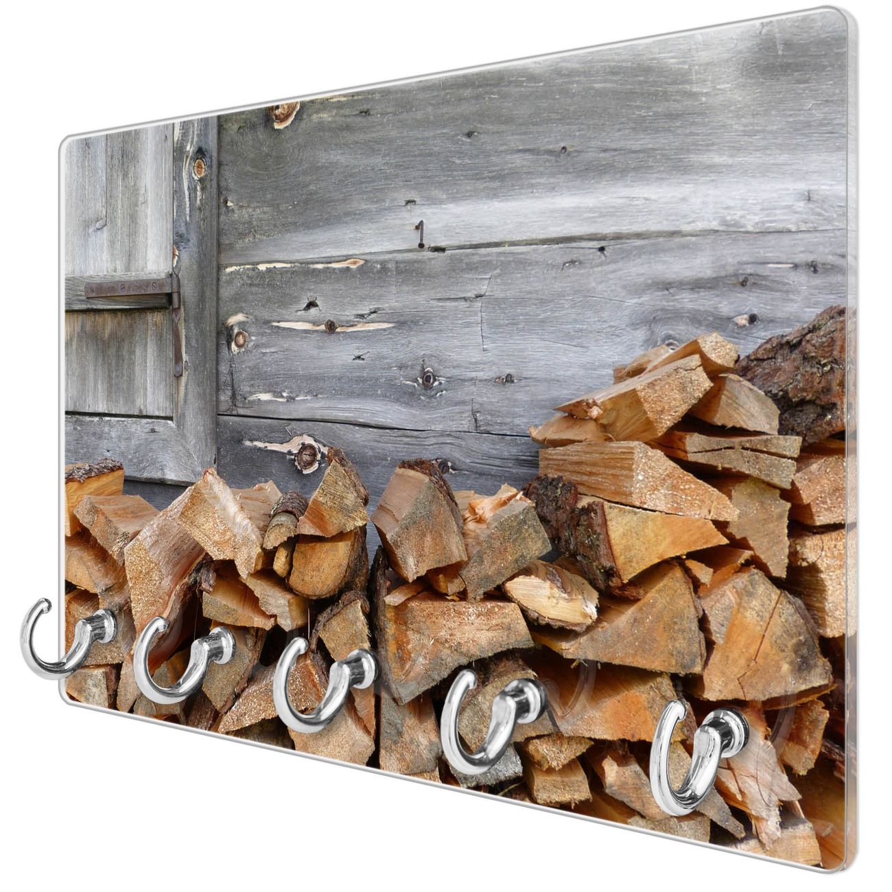 Glas Schlüsselbrett mit 5 Haken Feuerholz
