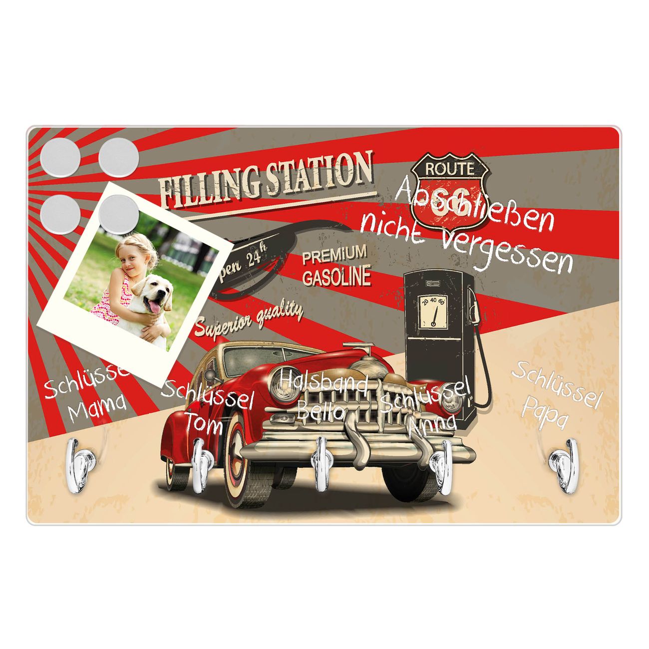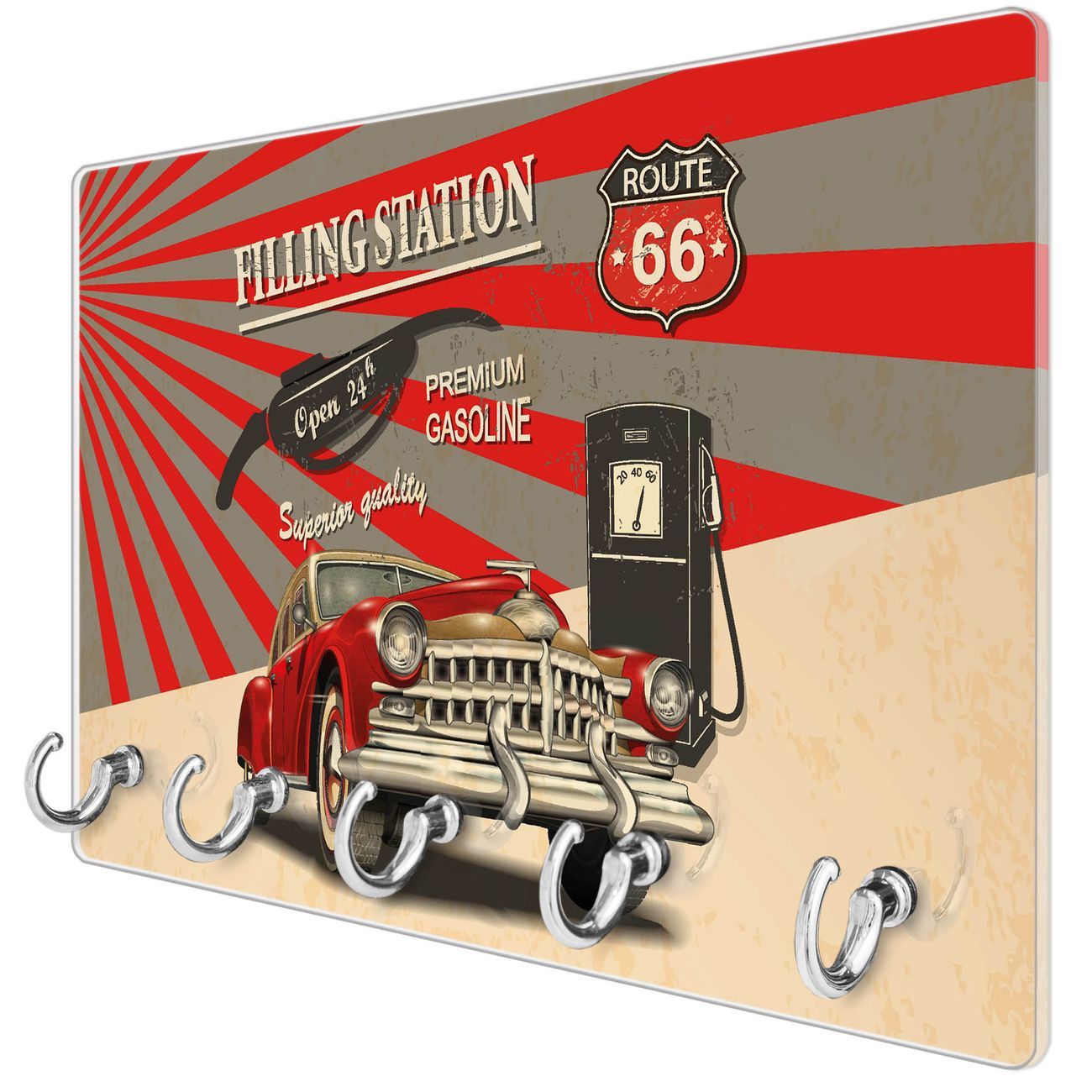 Glas Schlüsselbrett mit 5 Haken Filling Station