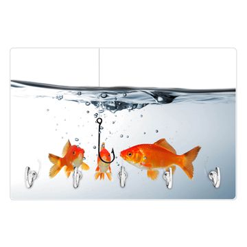 Glas Schlüsselbrett mit 5 Haken Fische