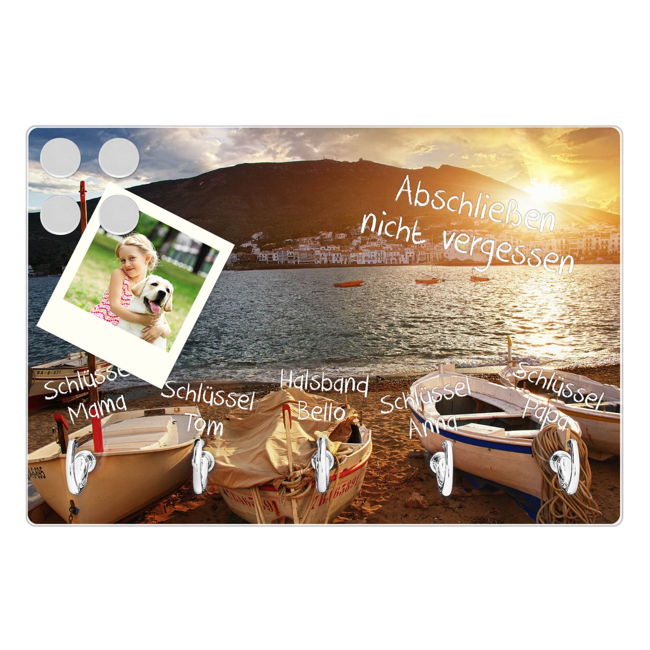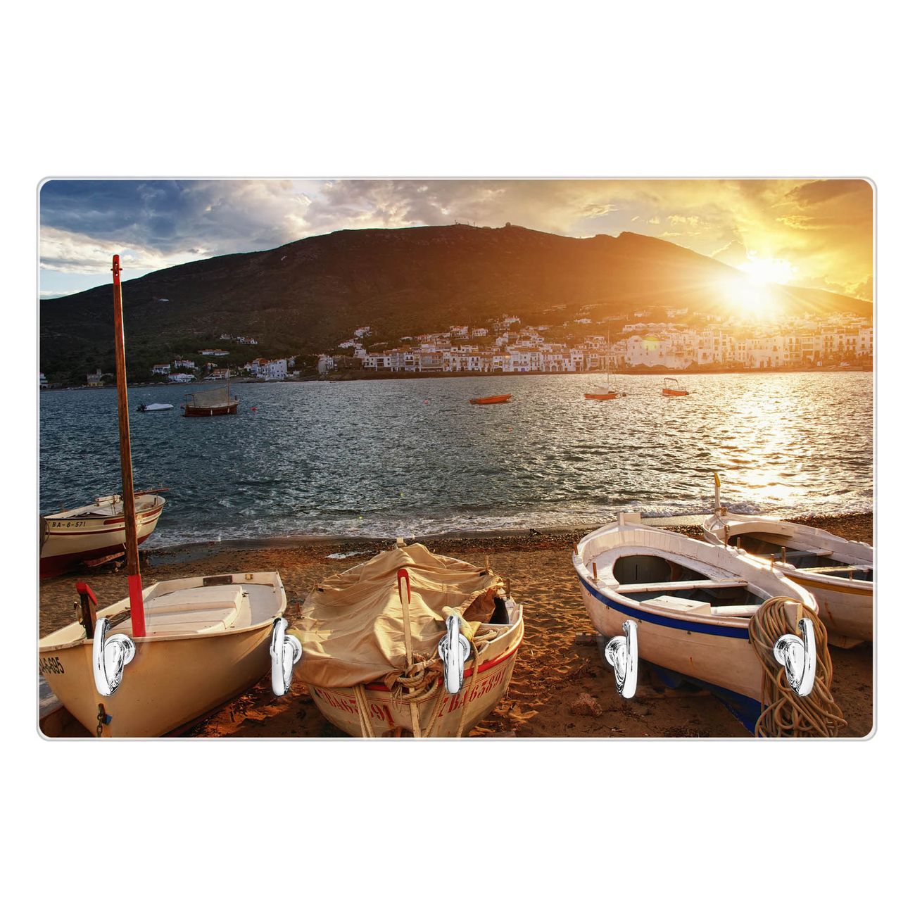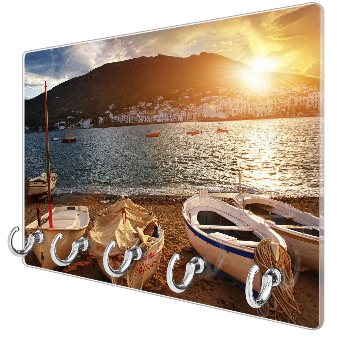 Glas Schlüsselbrett mit 5 Haken Fischerboote
