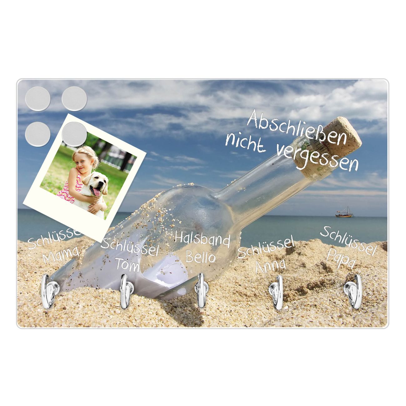Glas Schlüsselbrett mit 5 Haken Flaschenpost