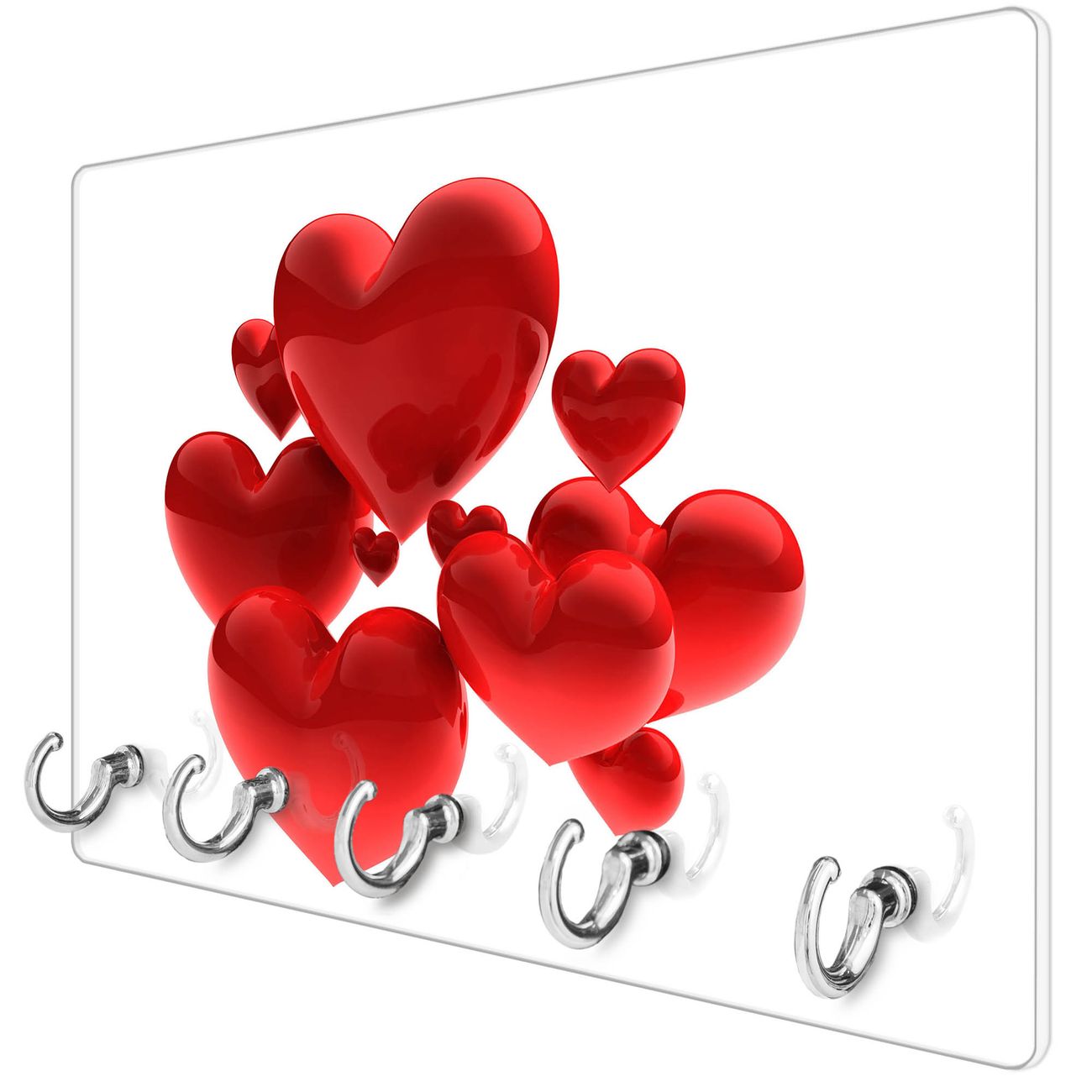 Glas Schlüsselbrett mit 5 Haken Fliegende Herzen
