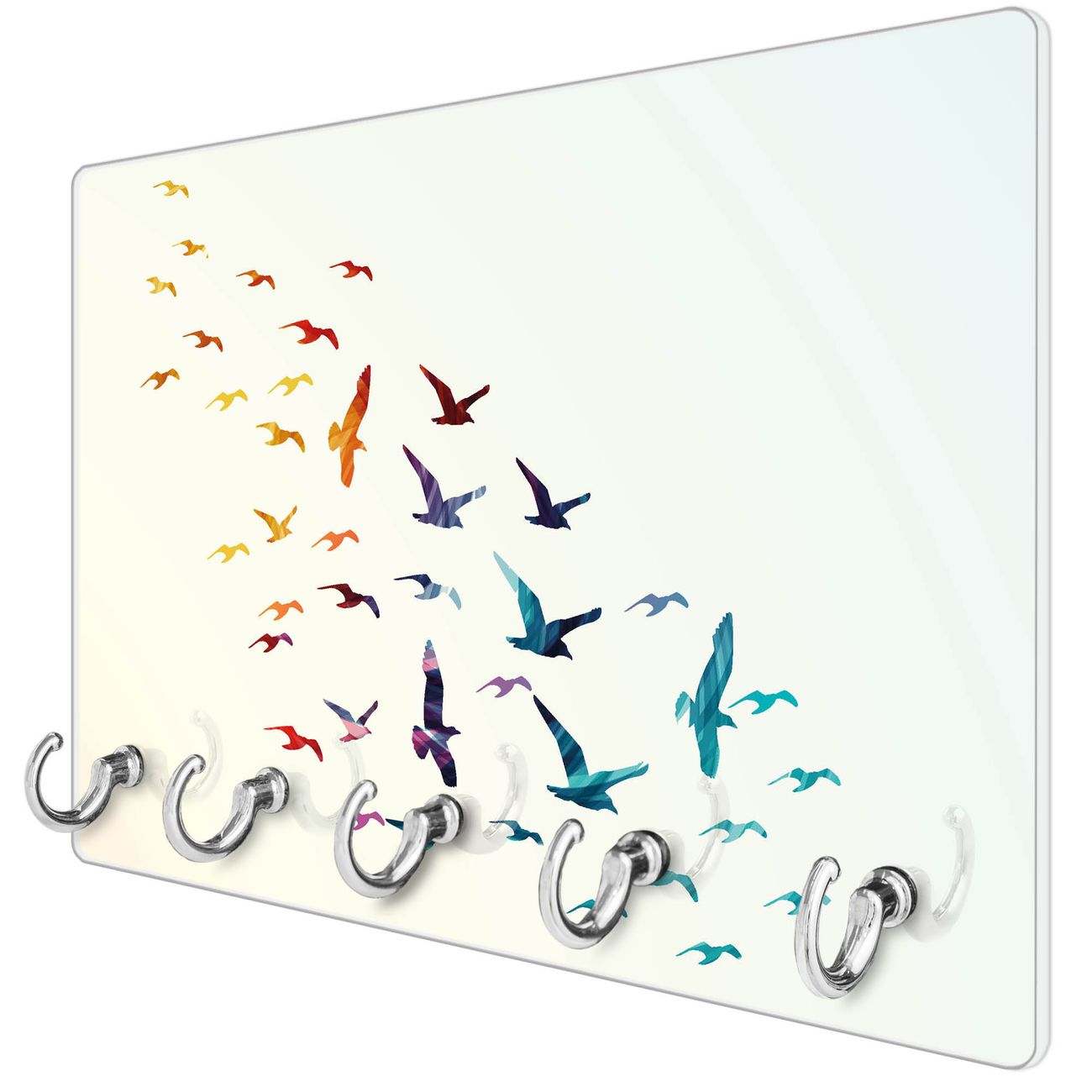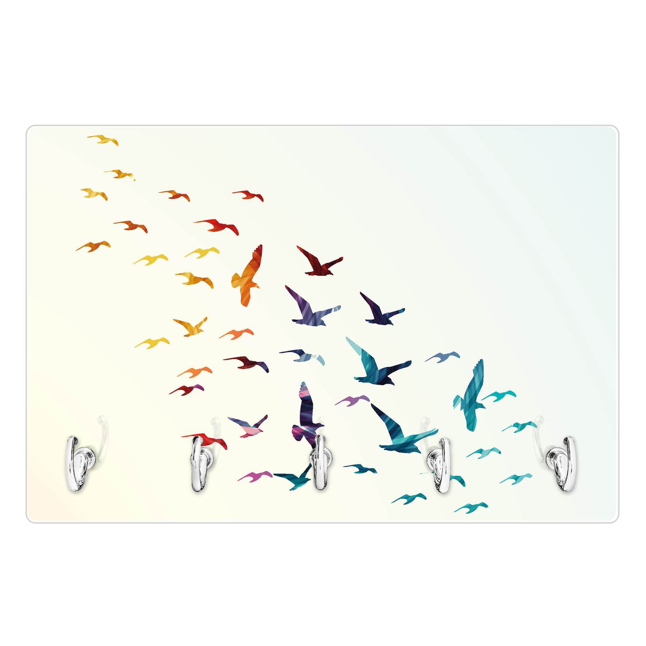 Glas Schlüsselbrett mit 5 Haken Fliegende Vögel