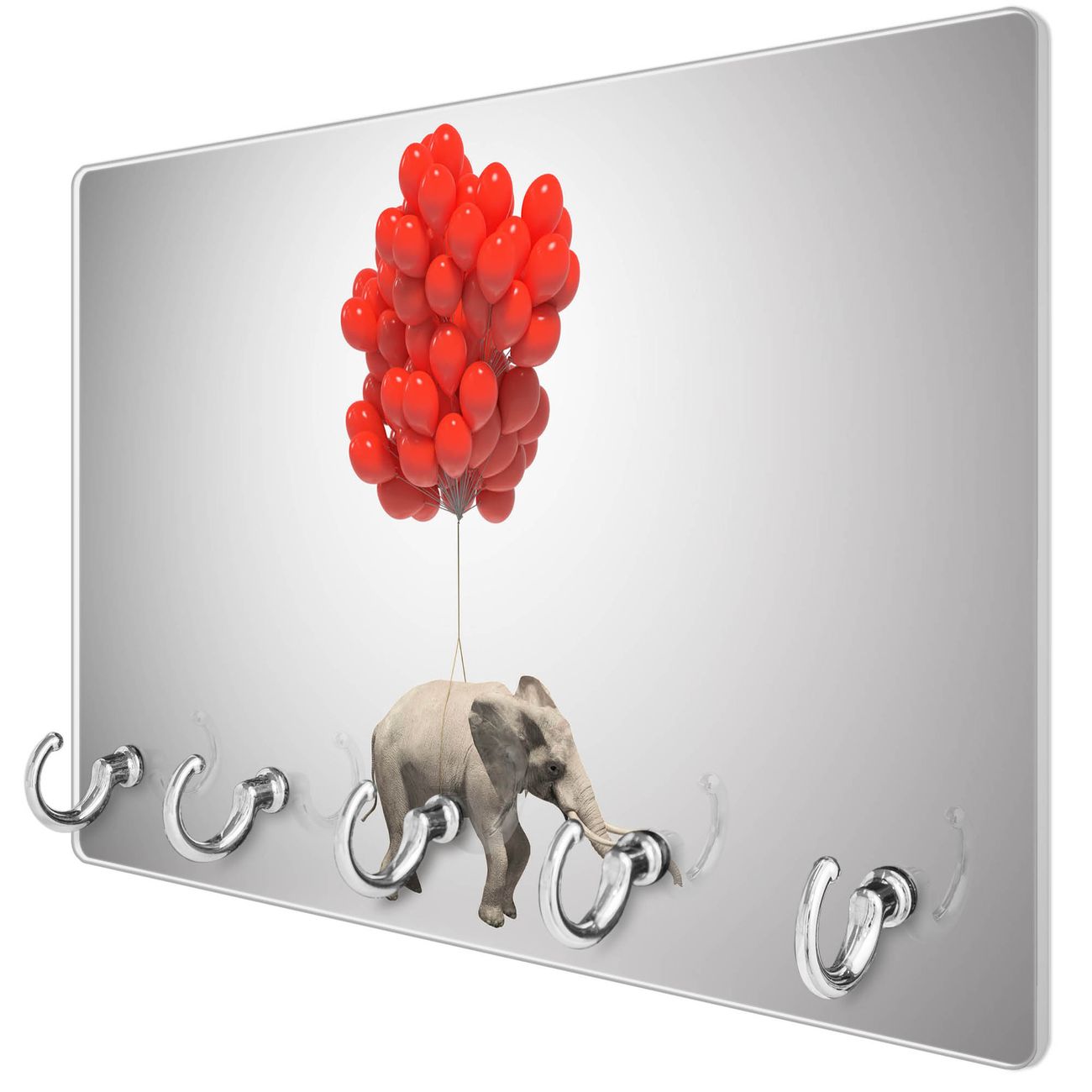 Glas Schlüsselbrett mit 5 Haken Fliegender Elefant