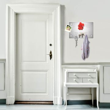 FUNKTION: Mit dem banjado Schlüsselbrett Fliegender Elefant hat Ihre Suche nach dem Schlüsselbund endlich ein Ende! Auf gesamt 5 Haken finden auch die größten Schlüssel ihren Platz. Durch den farbenfrohen Motivdruck ist das Schlüsselboard ein Blickfang in jeder Wohnung. DESIGN: Die Schlüsselleiste mit Motiv Fliegender Elefant hat ein sehr ansprechendes und ausgefallenes Design. Das Glasboard besteht aus einer gehärteten Glasscheibe mit dem Motiv Ihrer Wahl. Ihre neue Schlüsselaufbewahrung ist funktionell und ein optisches Highlight. DETAILS: Das Schlüsselbrett ist 30 x 20 x 4,5 CM (BxHxT). Das ganze Board besteht aus gehärtetem Sicherheitsglas, die Haken zur Selbstmontage präsentieren sich in Edelstahl-Optik. Für einen sicheren Halt erfolgt die Aufhängung an 2 vorgefertigten Haltern an der Rückseite. Das Montagematerial fügen wir bei. NUTZEN: Hier findet alles seinen Platz: Schlüsselbunde, Geschirrtücher, Hundeleinen oder Kinderjacken. Das Glas kann mit Kreidestiften bzw. Whiteboard-Marker beschrieben werden, mit extrastarken Neodym-Magneten können Sie auch Notizen anheften. BANJADO: Wir sind ein kleines Team aus dem Herzen von Sachsen und fertigen Ihre neue Schlüsselaufbewahrung von Hand an. Sie erhalten Handarbeit und keine preiswerte Importware. Wir hoffen, dass Ihnen unsere Idee zusagt, herzlichst das banjado Team.