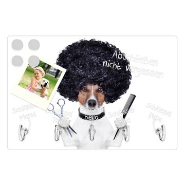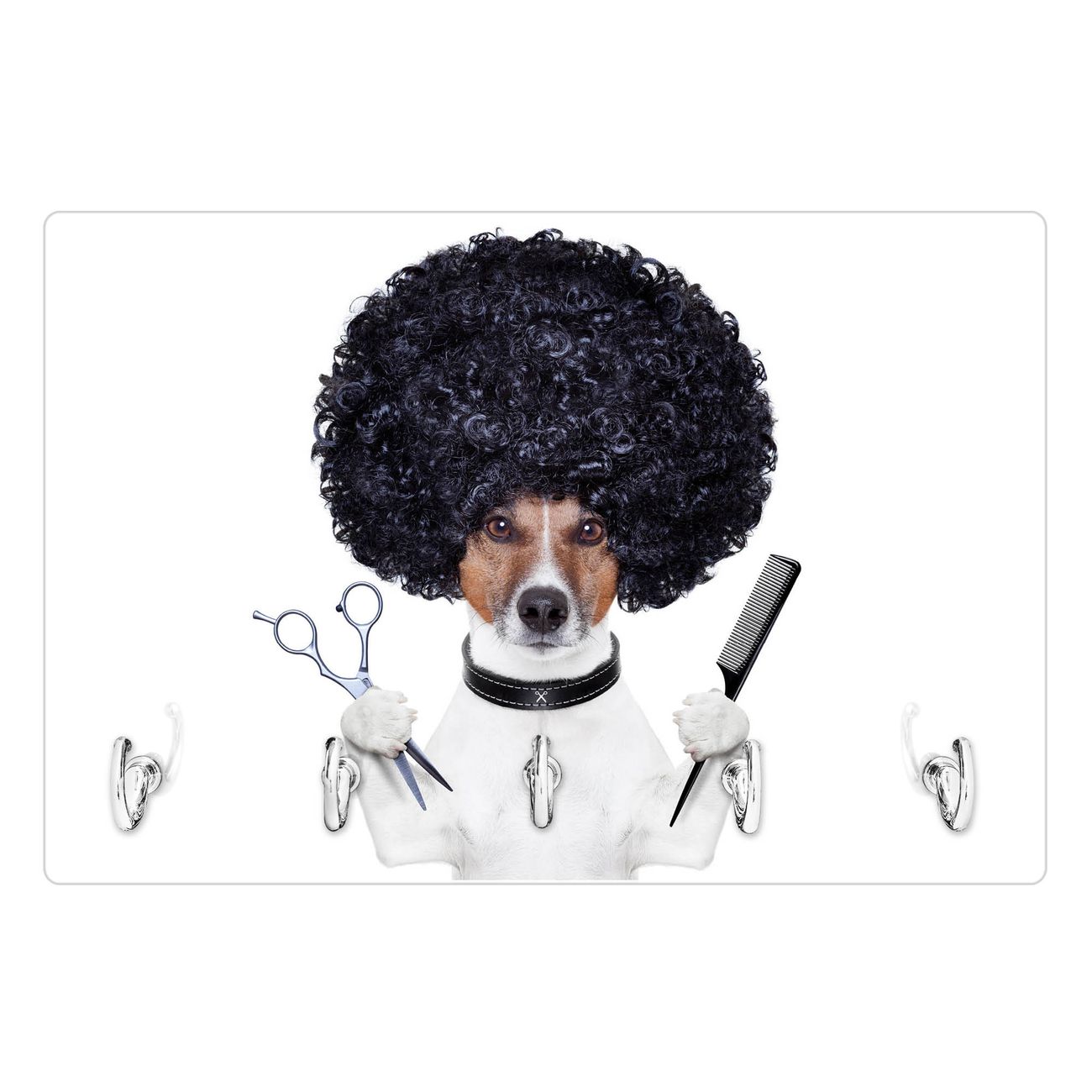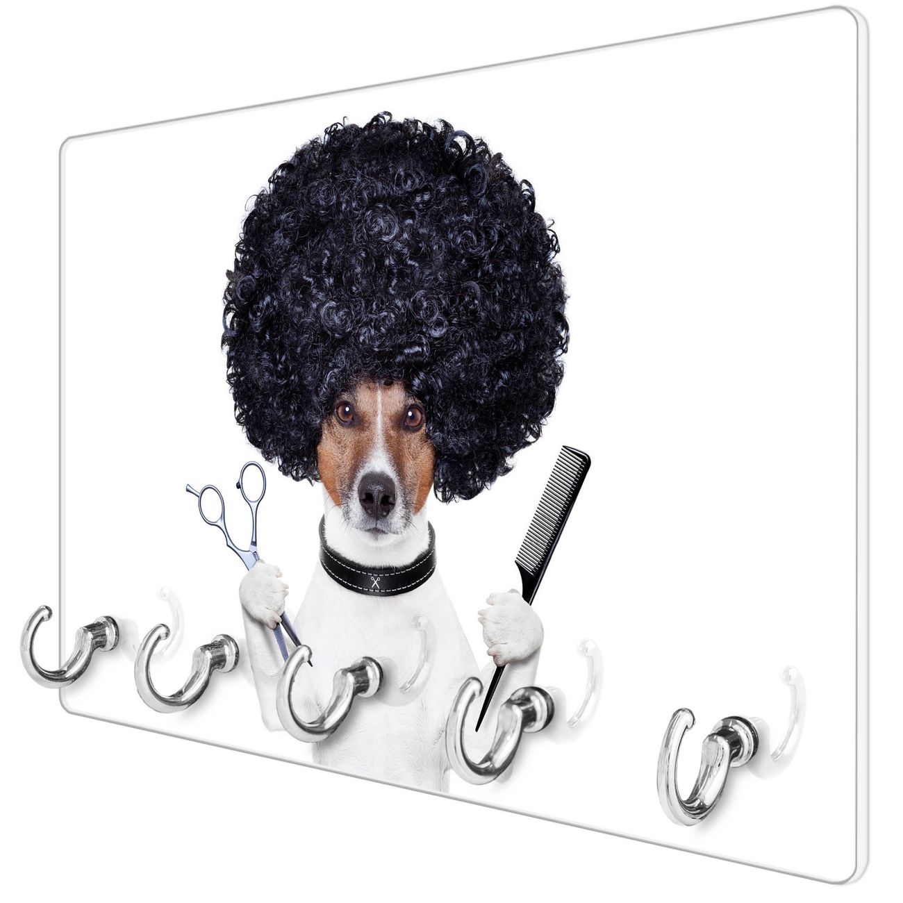 Glas Schlüsselbrett mit 5 Haken Friseur Jack Russel