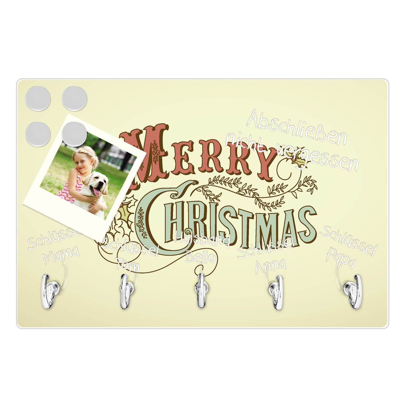 Glas Schlüsselbrett mit 5 Haken Frohes Fest