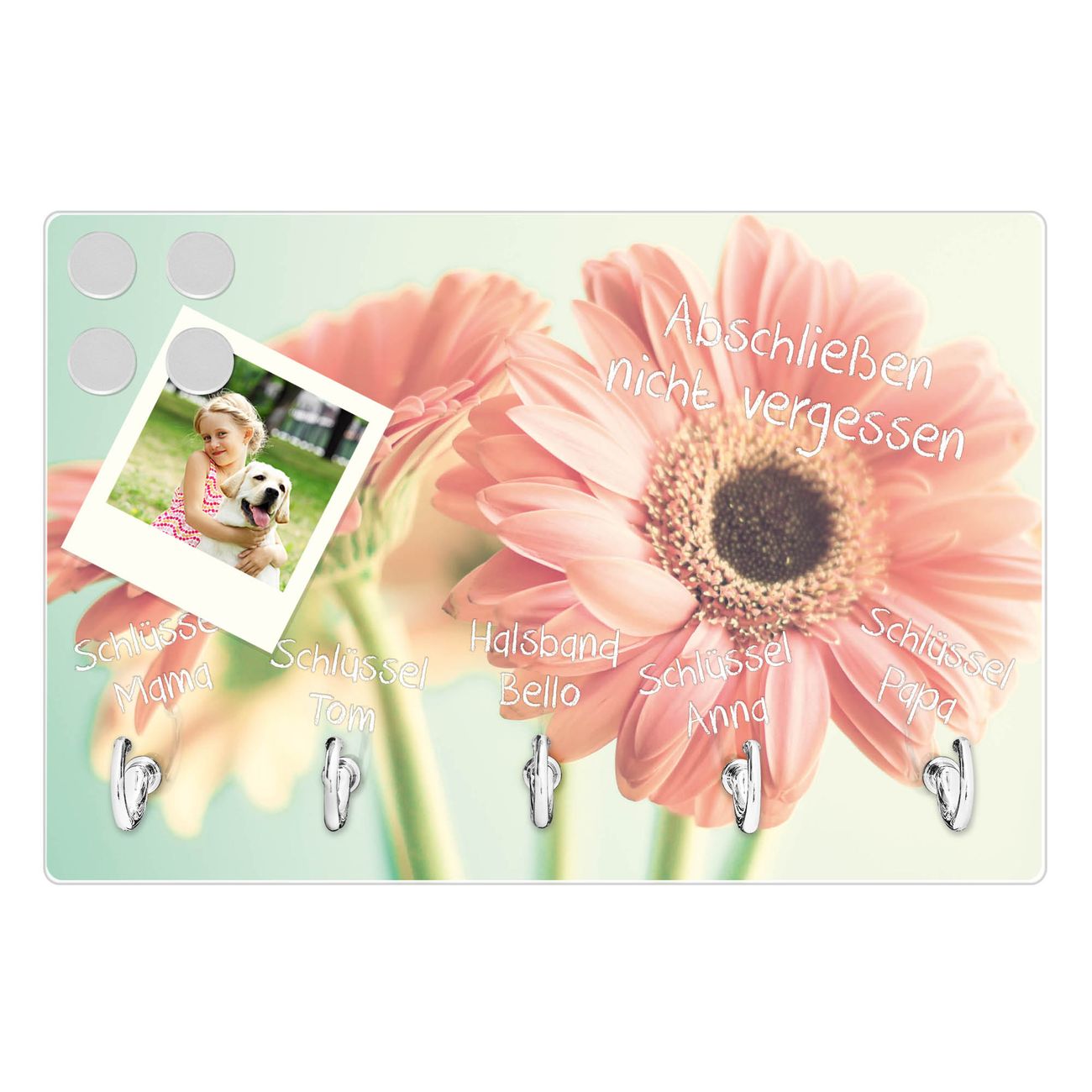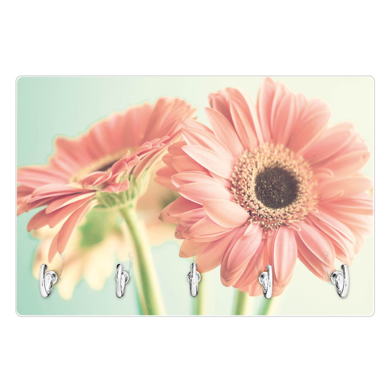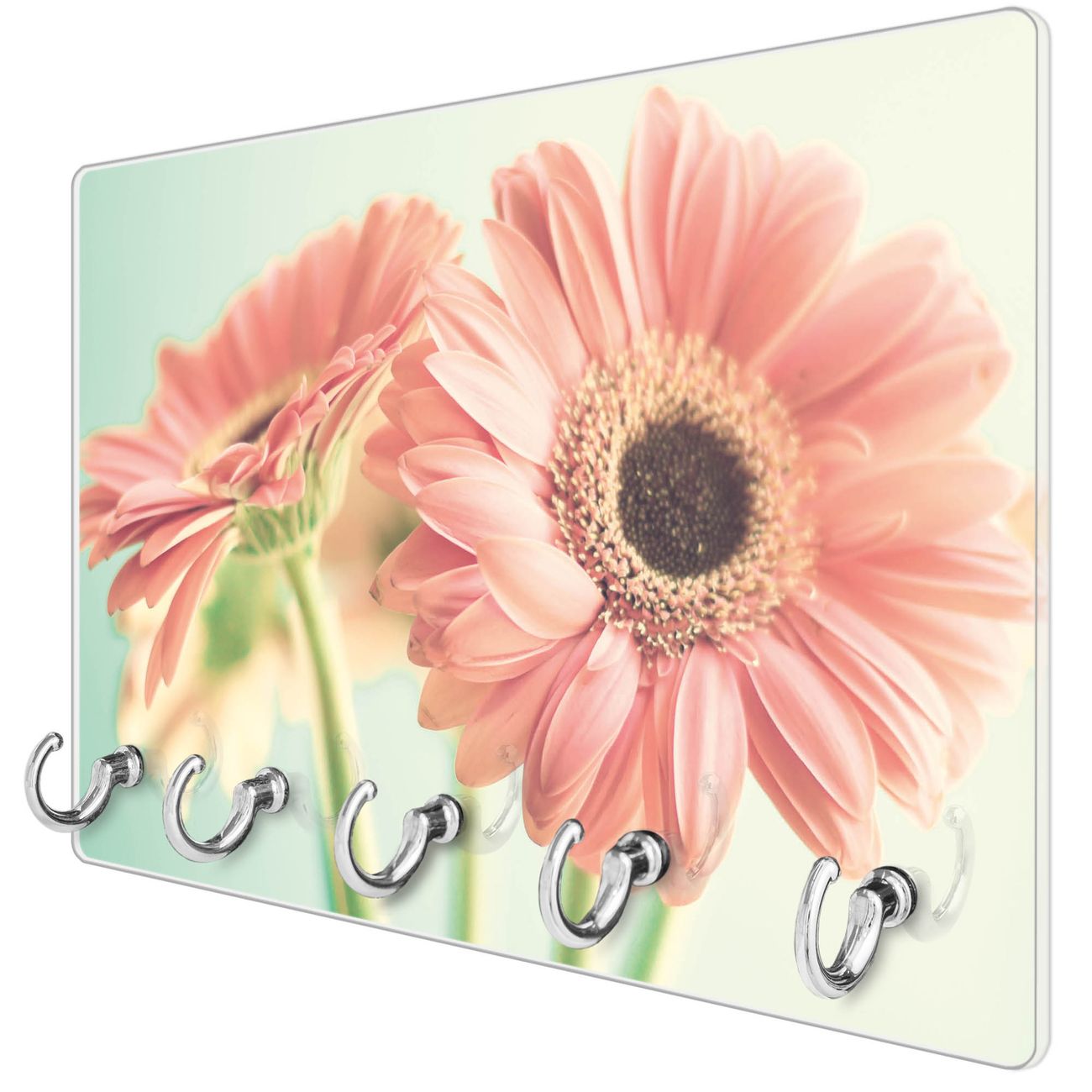 Glas Schlüsselbrett mit 5 Haken Fünf Gerbera
