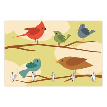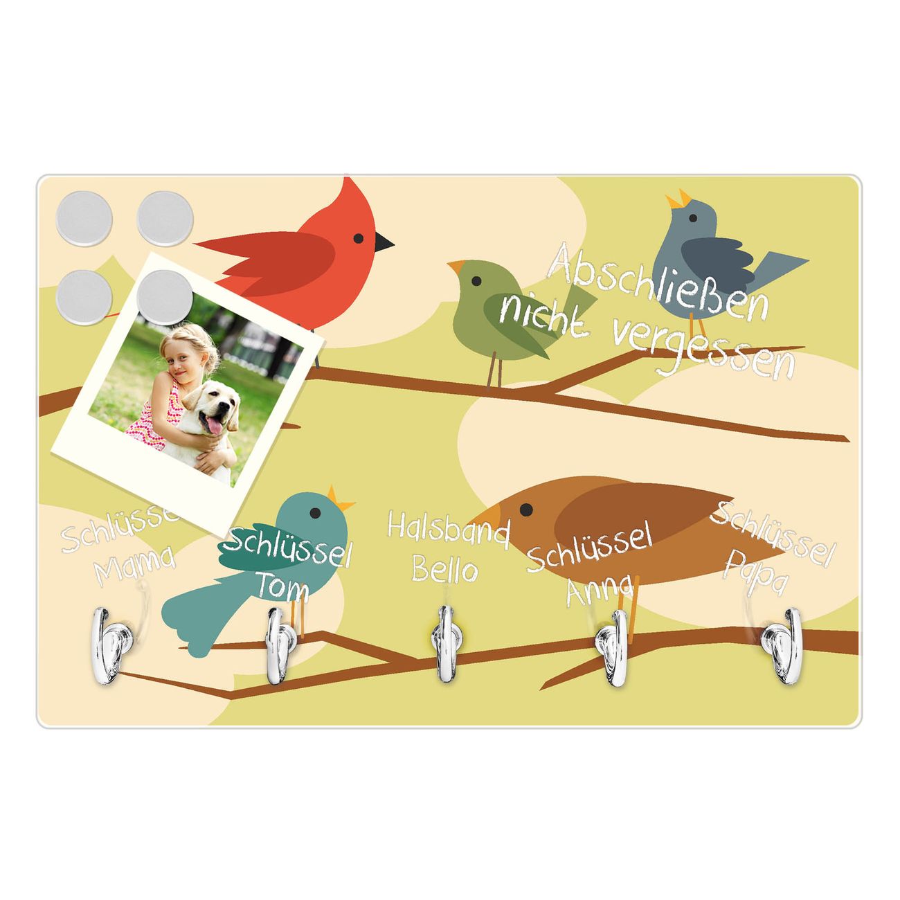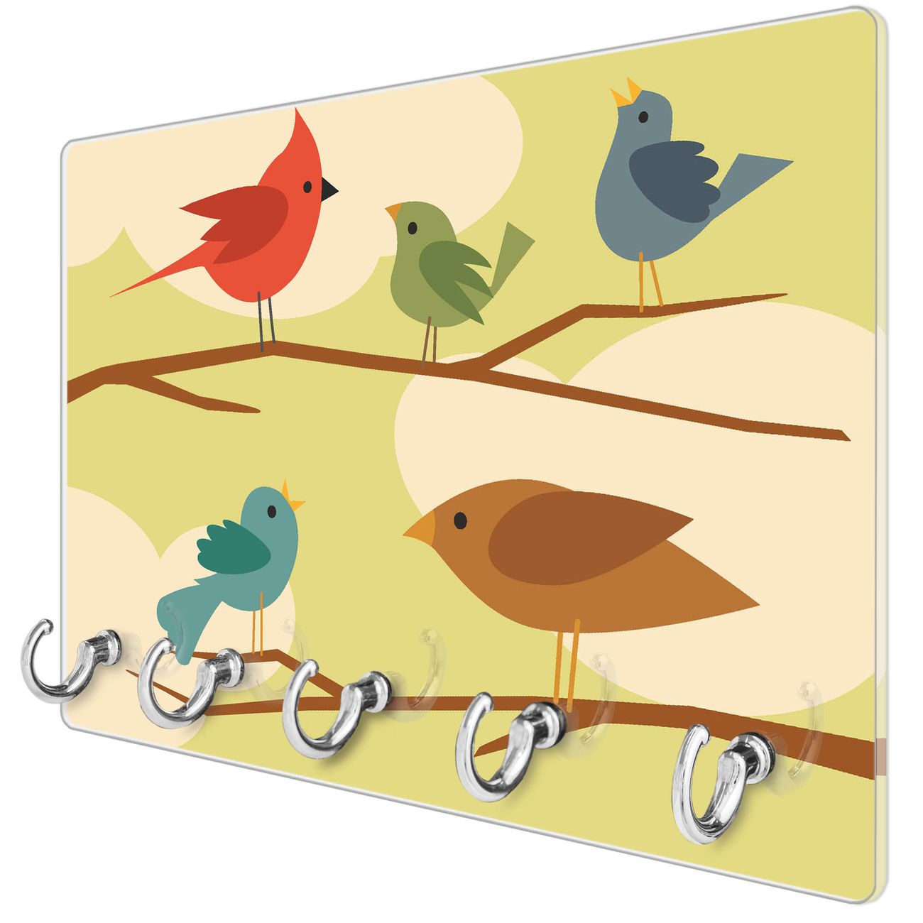 Glas Schlüsselbrett mit 5 Haken Fünf Vögel