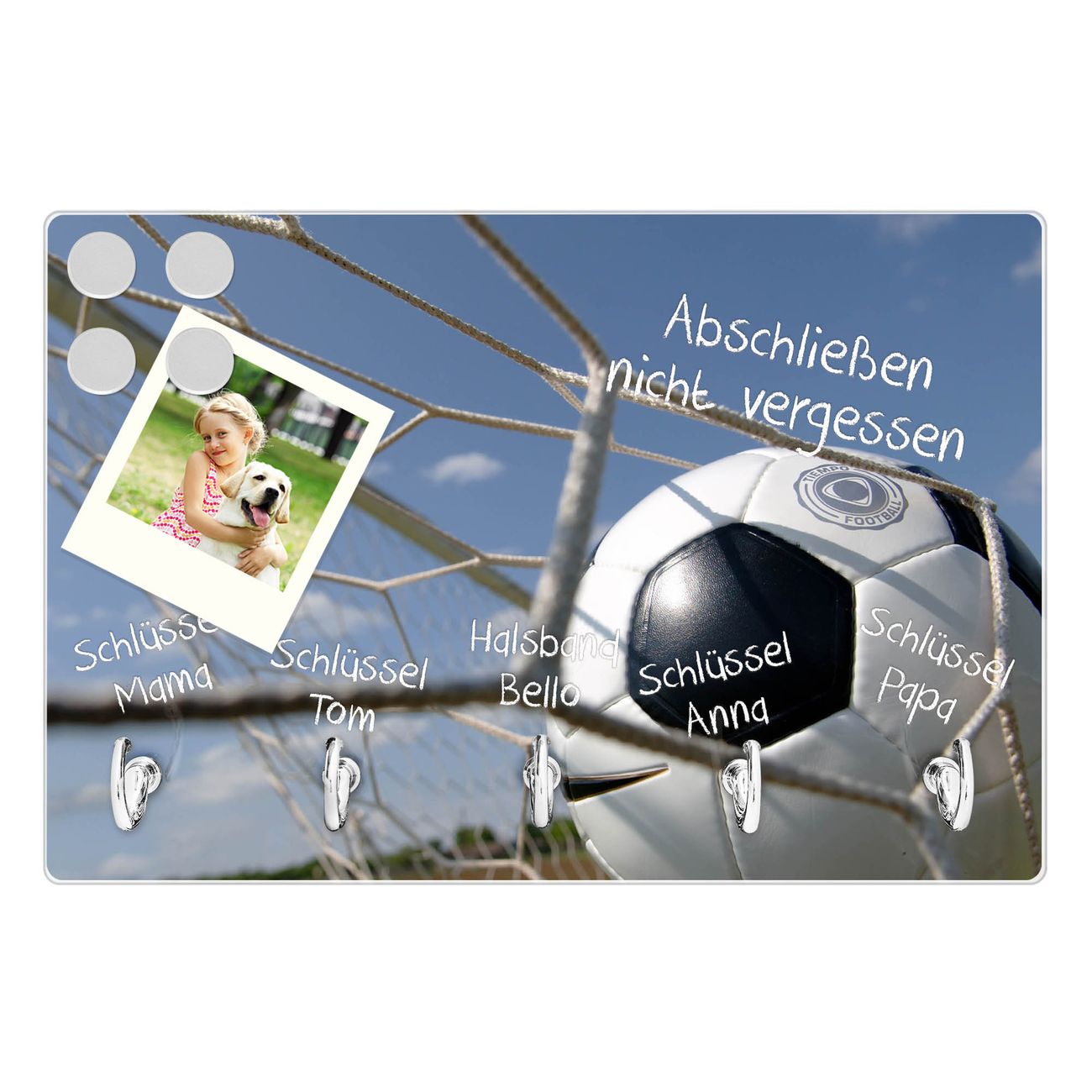 Glas Schlüsselbrett mit 5 Haken Fußball