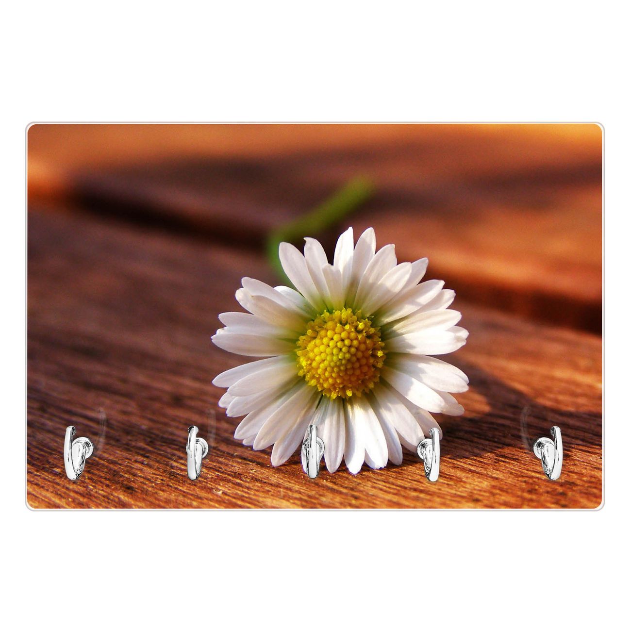 Glas Schlüsselbrett mit 5 Haken Gänseblümchen