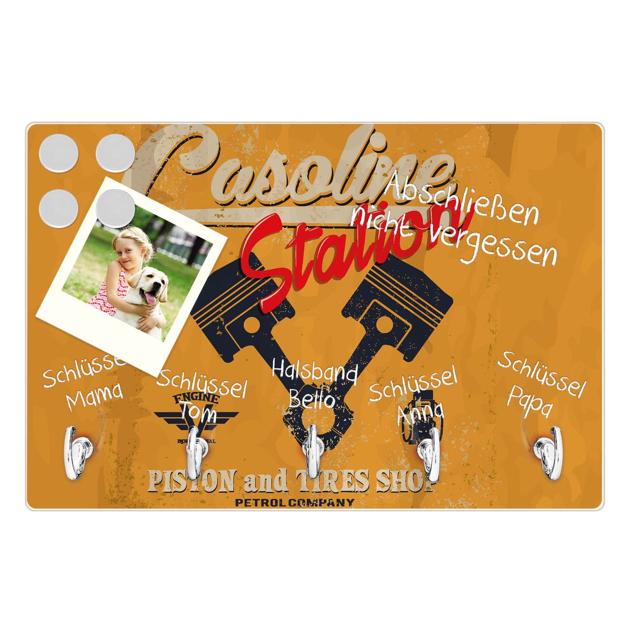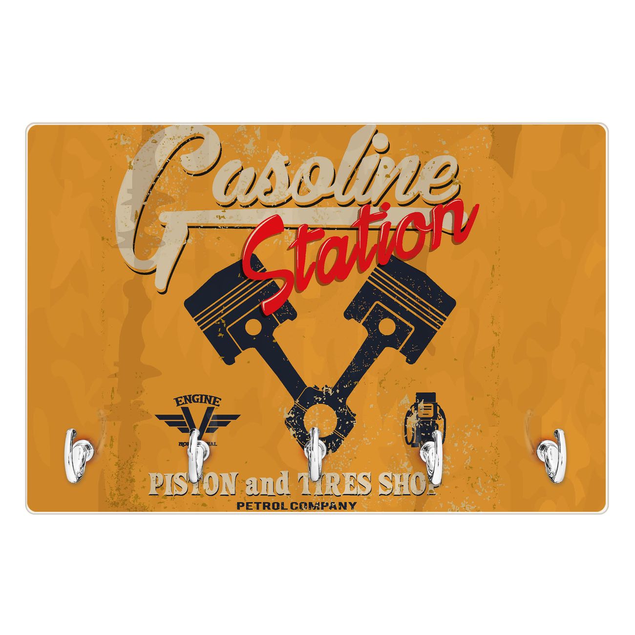Glas Schlüsselbrett mit 5 Haken Gasoline Station