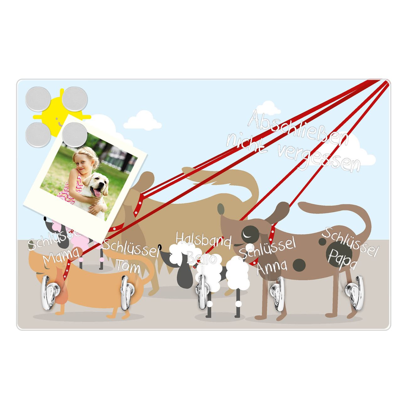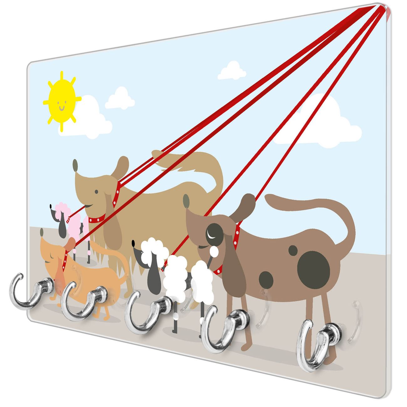Glas Schlüsselbrett mit 5 Haken Gassi Gehen