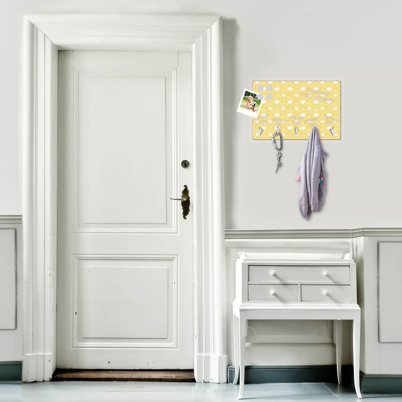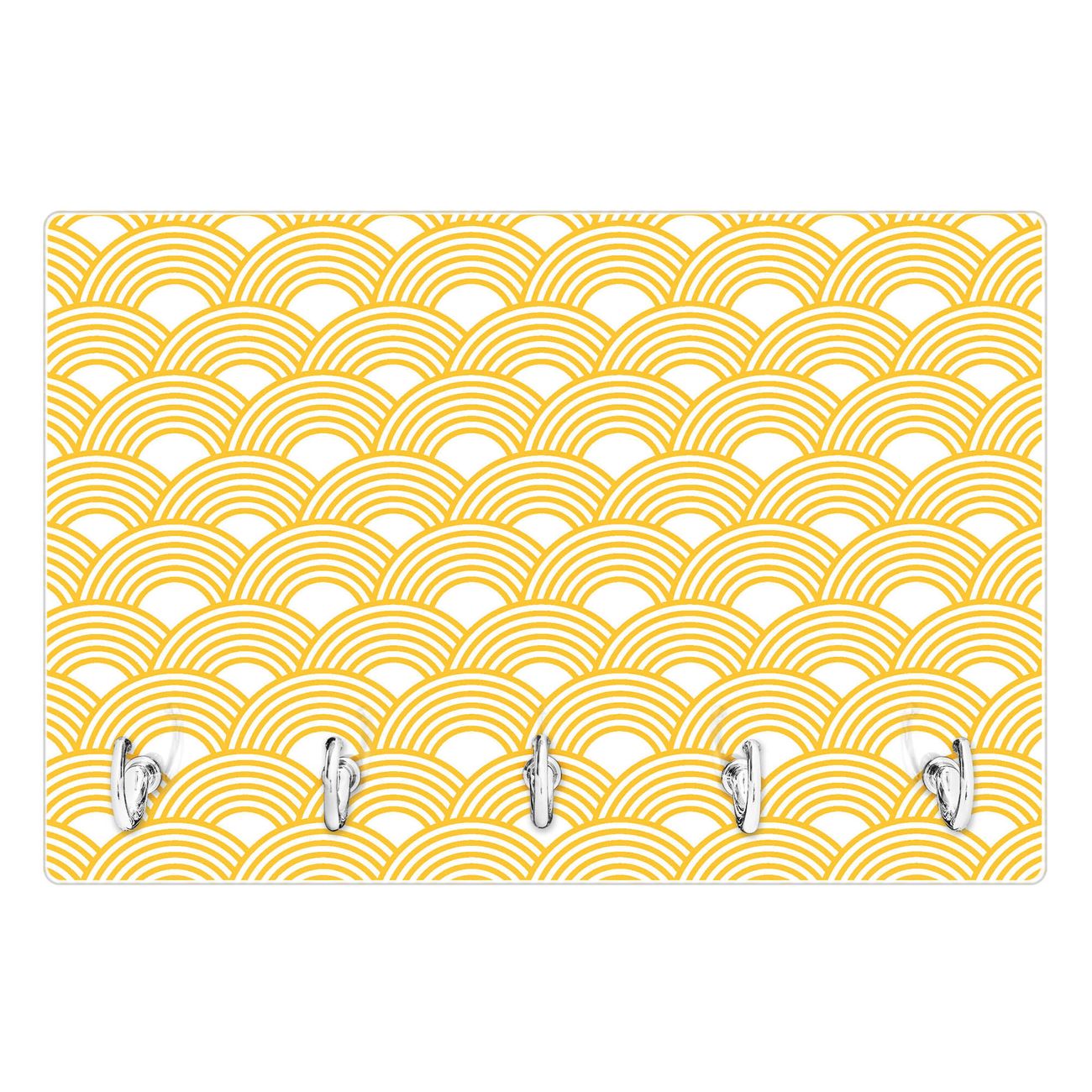 Glas Schlüsselbrett mit 5 Haken Gelbe Wellen