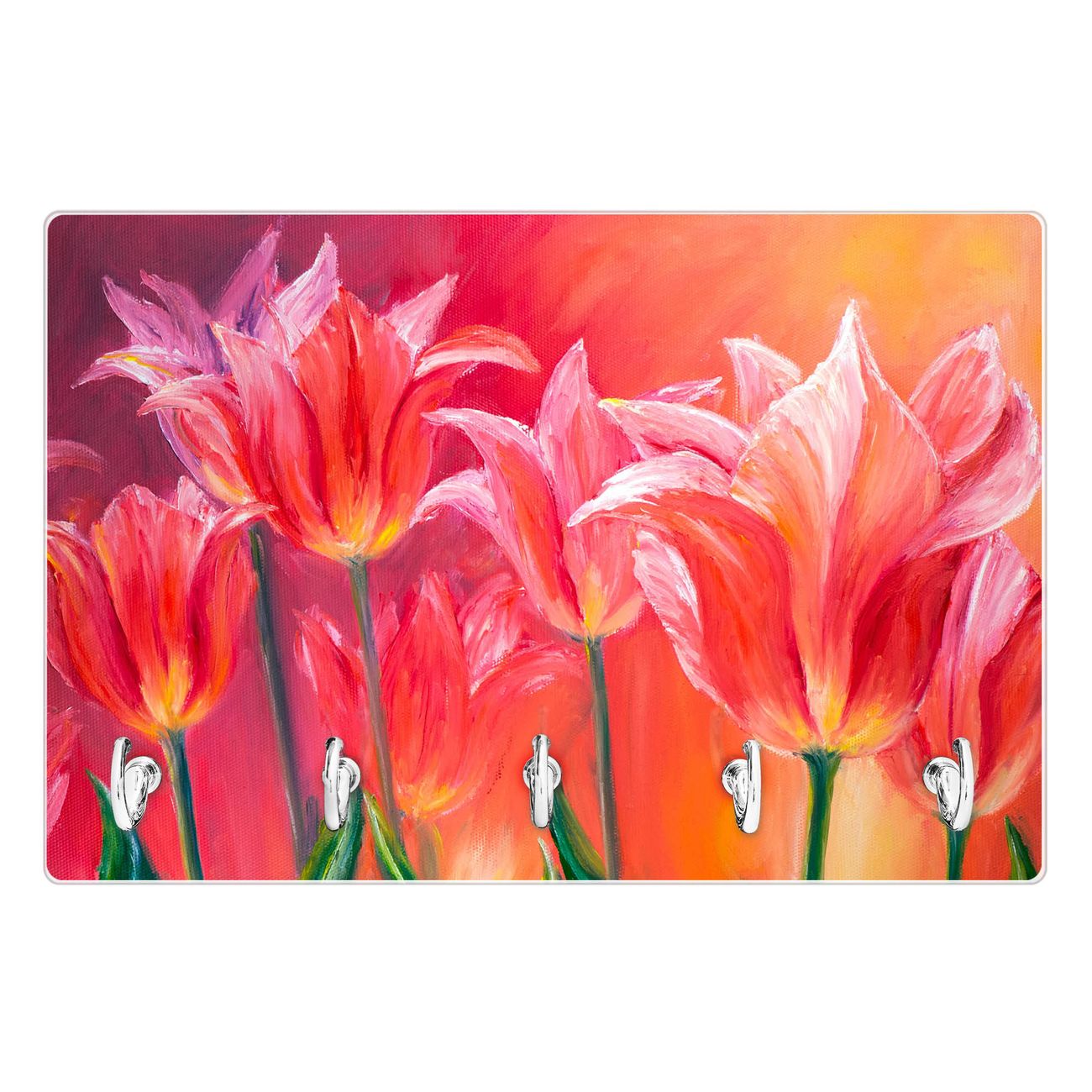 Glas Schlüsselbrett mit 5 Haken Gemalte Tulpen