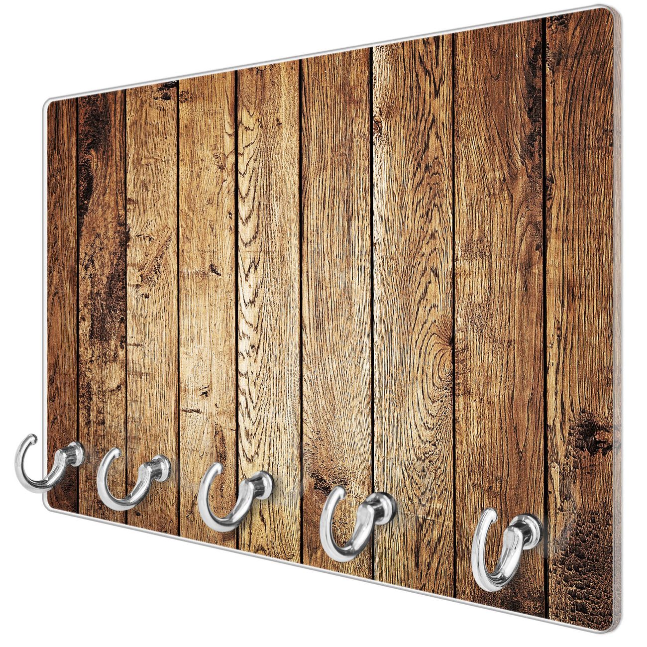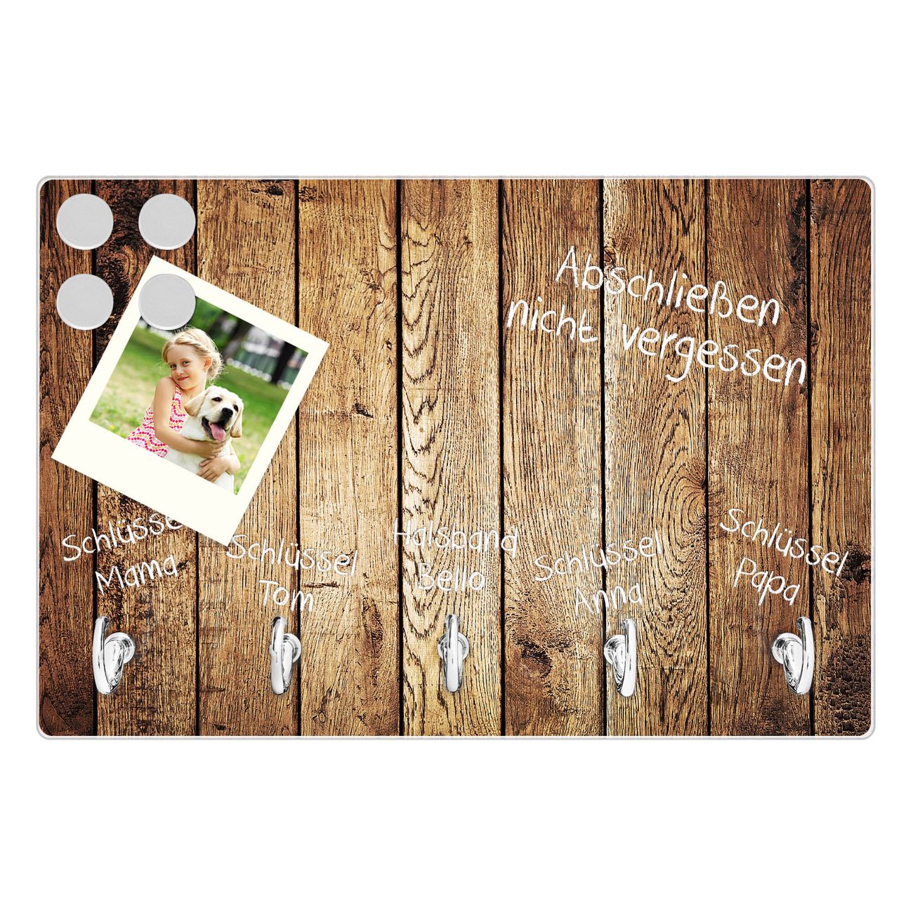 Glas Schlüsselbrett mit 5 Haken Geöltes Holz