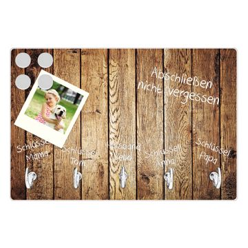 FUNKTION: Mit dem banjado Schlüsselbrett Geöltes Holz hat Ihre Suche nach dem Schlüsselbund endlich ein Ende! Auf gesamt 5 Haken finden auch die größten Schlüssel ihren Platz. Durch den farbenfrohen Motivdruck ist das Schlüsselboard ein Blickfang in jeder Wohnung. DESIGN: Die Schlüsselleiste mit Motiv Geöltes Holz hat ein sehr ansprechendes und ausgefallenes Design. Das Glasboard besteht aus einer gehärteten Glasscheibe mit dem Motiv Ihrer Wahl. Ihre neue Schlüsselaufbewahrung ist funktionell und ein optisches Highlight. DETAILS: Das Schlüsselbrett ist 30 x 20 x 4,5 CM (BxHxT). Das ganze Board besteht aus gehärtetem Sicherheitsglas, die Haken zur Selbstmontage präsentieren sich in Edelstahl-Optik. Für einen sicheren Halt erfolgt die Aufhängung an 2 vorgefertigten Haltern an der Rückseite. Das Montagematerial fügen wir bei. NUTZEN: Hier findet alles seinen Platz: Schlüsselbunde, Geschirrtücher, Hundeleinen oder Kinderjacken. Das Glas kann mit Kreidestiften bzw. Whiteboard-Marker beschrieben werden, mit extrastarken Neodym-Magneten können Sie auch Notizen anheften. BANJADO: Wir sind ein kleines Team aus dem Herzen von Sachsen und fertigen Ihre neue Schlüsselaufbewahrung von Hand an. Sie erhalten Handarbeit und keine preiswerte Importware. Wir hoffen, dass Ihnen unsere Idee zusagt, herzlichst das banjado Team.