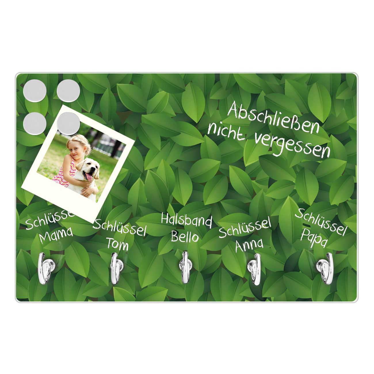 Glas Schlüsselbrett mit 5 Haken Grüne Blätter