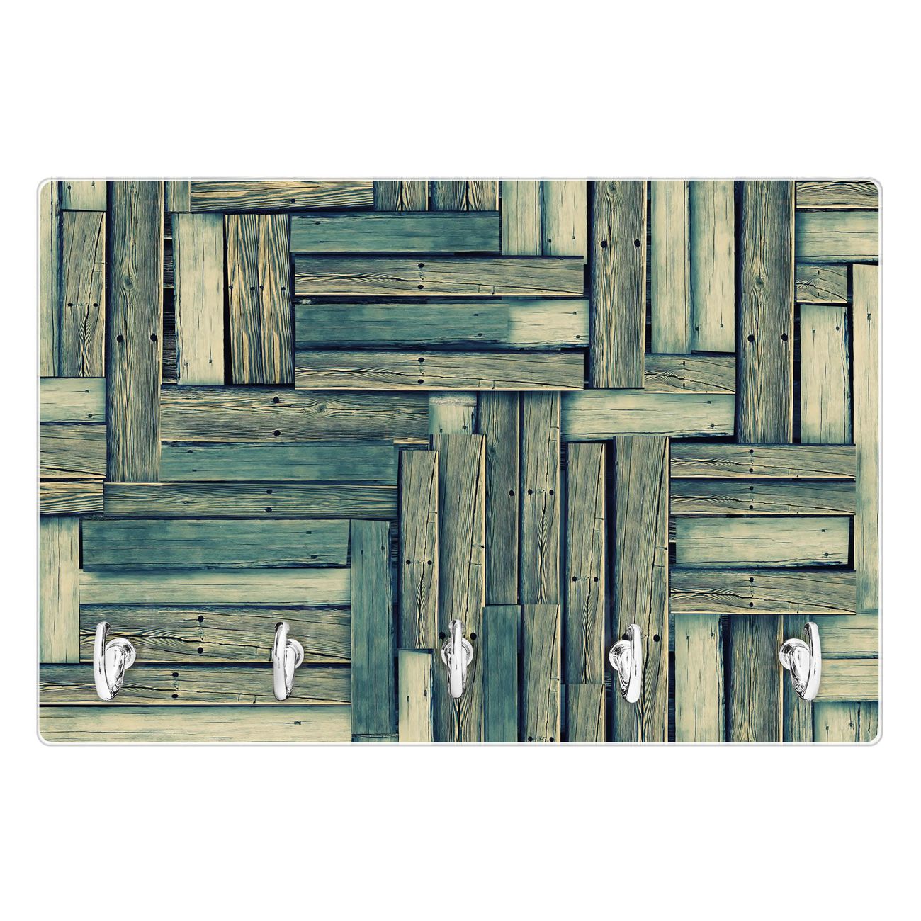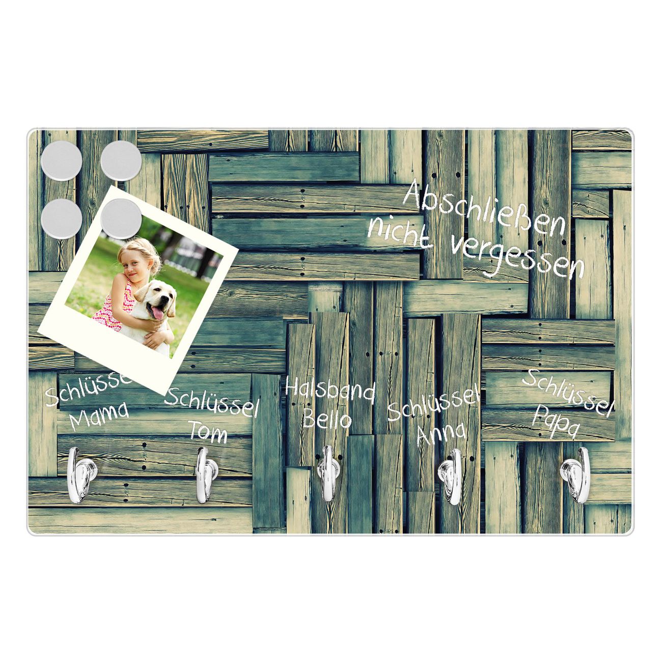 Glas Schlüsselbrett mit 5 Haken Grüne Planken