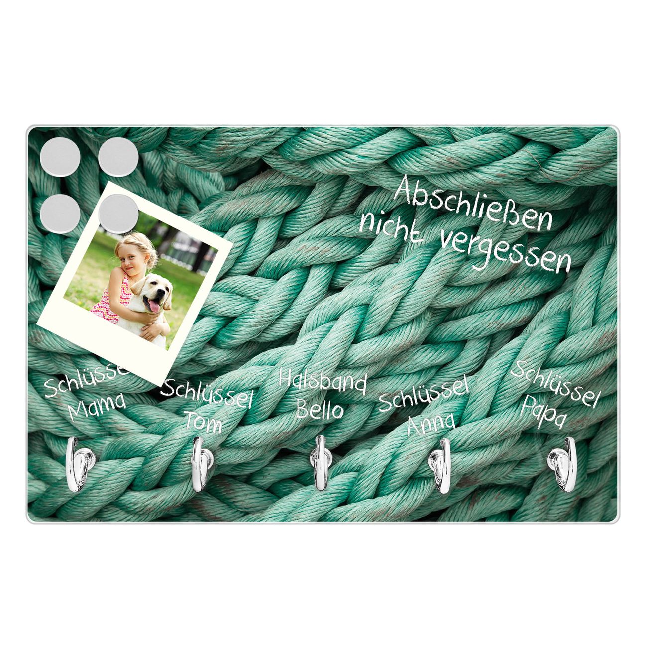 Glas Schlüsselbrett mit 5 Haken Grünes Tau