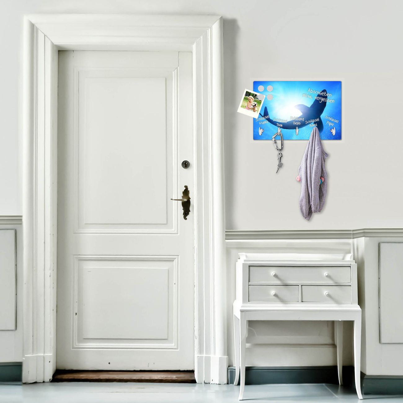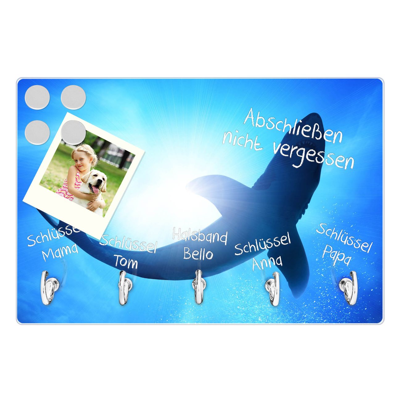 FUNKTION: Mit dem banjado Schlüsselbrett Hai hat Ihre Suche nach dem Schlüsselbund endlich ein Ende! Auf gesamt 5 Haken finden auch die größten Schlüssel ihren Platz. Durch den farbenfrohen Motivdruck ist das Schlüsselboard ein Blickfang in jeder Wohnung. DESIGN: Die Schlüsselleiste mit Motiv Hai hat ein sehr ansprechendes und ausgefallenes Design. Das Glasboard besteht aus einer gehärteten Glasscheibe mit dem Motiv Ihrer Wahl. Ihre neue Schlüsselaufbewahrung ist funktionell und ein optisches Highlight. DETAILS: Das Schlüsselbrett ist 30 x 20 x 4,5 CM (BxHxT). Das ganze Board besteht aus gehärtetem Sicherheitsglas, die Haken zur Selbstmontage präsentieren sich in Edelstahl-Optik. Für einen sicheren Halt erfolgt die Aufhängung an 2 vorgefertigten Haltern an der Rückseite. Das Montagematerial fügen wir bei. NUTZEN: Hier findet alles seinen Platz: Schlüsselbunde, Geschirrtücher, Hundeleinen oder Kinderjacken. Das Glas kann mit Kreidestiften bzw. Whiteboard-Marker beschrieben werden, mit extrastarken Neodym-Magneten können Sie auch Notizen anheften. BANJADO: Wir sind ein kleines Team aus dem Herzen von Sachsen und fertigen Ihre neue Schlüsselaufbewahrung von Hand an. Sie erhalten Handarbeit und keine preiswerte Importware. Wir hoffen, dass Ihnen unsere Idee zusagt, herzlichst das banjado Team.