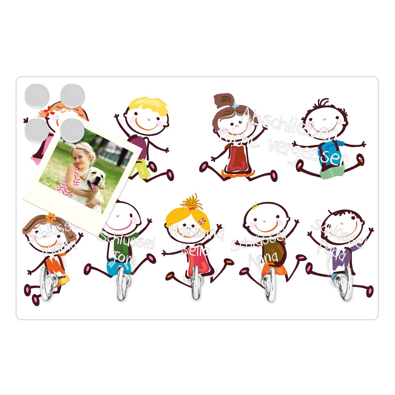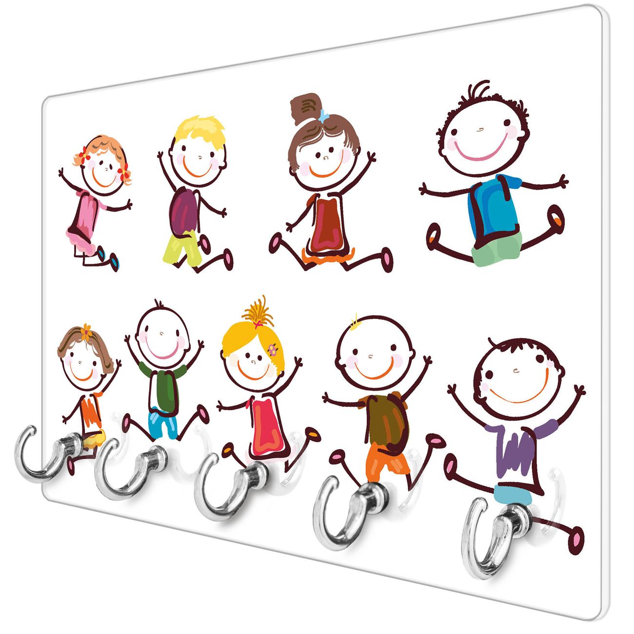 Glas Schlüsselbrett mit 5 Haken Happy Kids