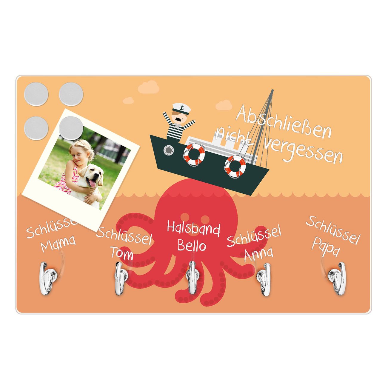 Glas Schlüsselbrett mit 5 Haken Havarie