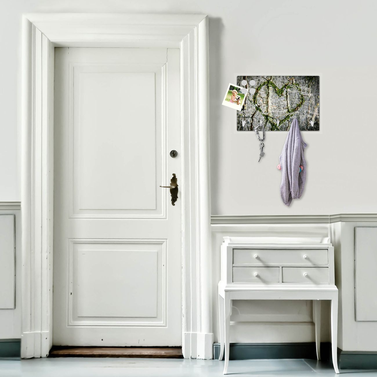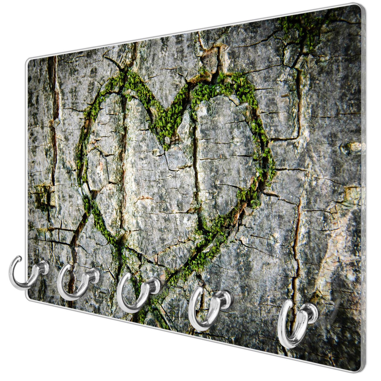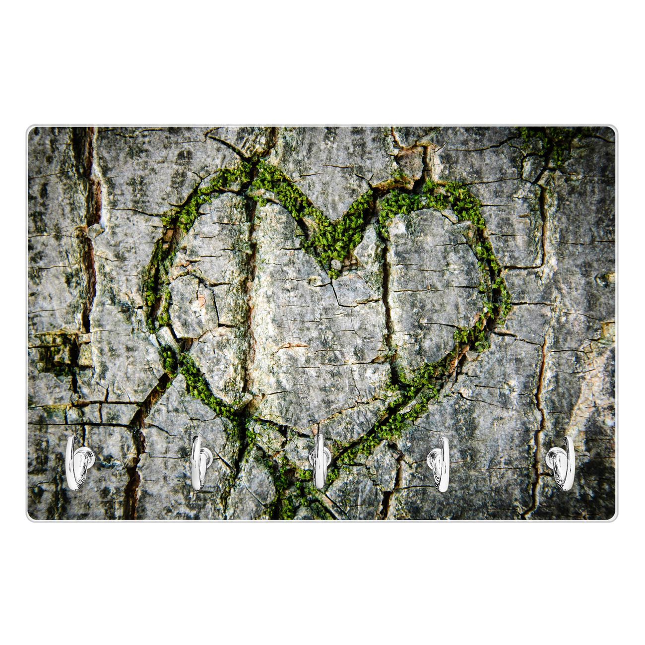 Glas Schlüsselbrett mit 5 Haken Herz Aus Moos