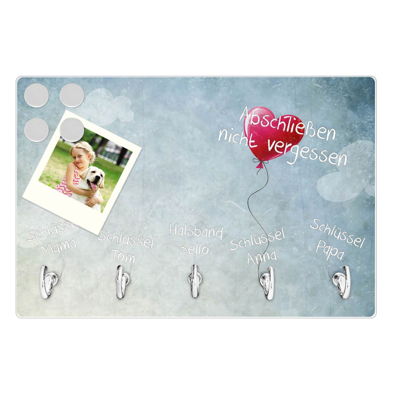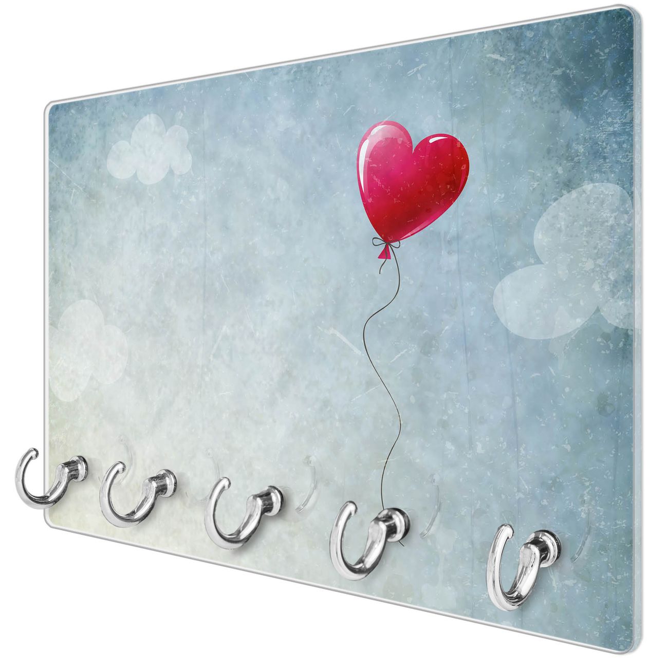 Glas Schlüsselbrett mit 5 Haken Herzballon