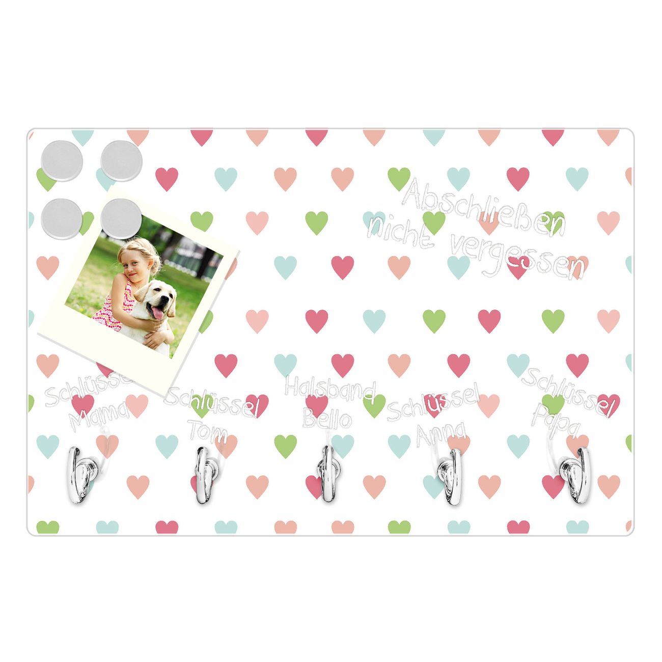 Glas Schlüsselbrett mit 5 Haken Herzen Auf Weiß